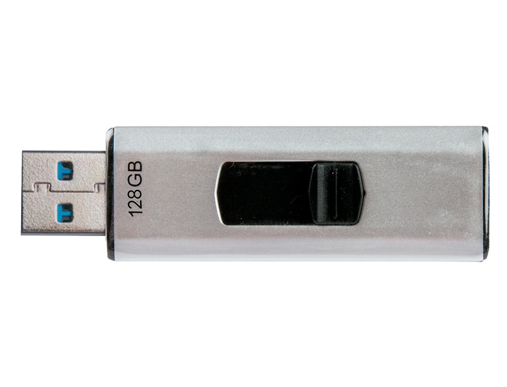Memoria Flash USB con un excelente rendimiento y gran velocidad. Práctico formato retráctil: el conector USB se oculta en el cuerpo compacto, para quedar totalmente protegido sin necesidad de una tapa. Interfaz SuperSpeed 3.0, compatible con USB 2.0. Color plateado. Cuenta con un orificio para colocar un cordón. Medidas: 55 x 20 x 7 mm.