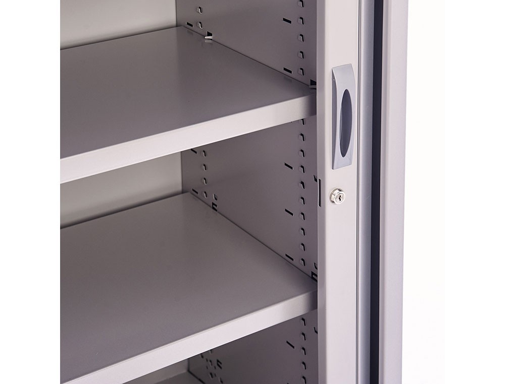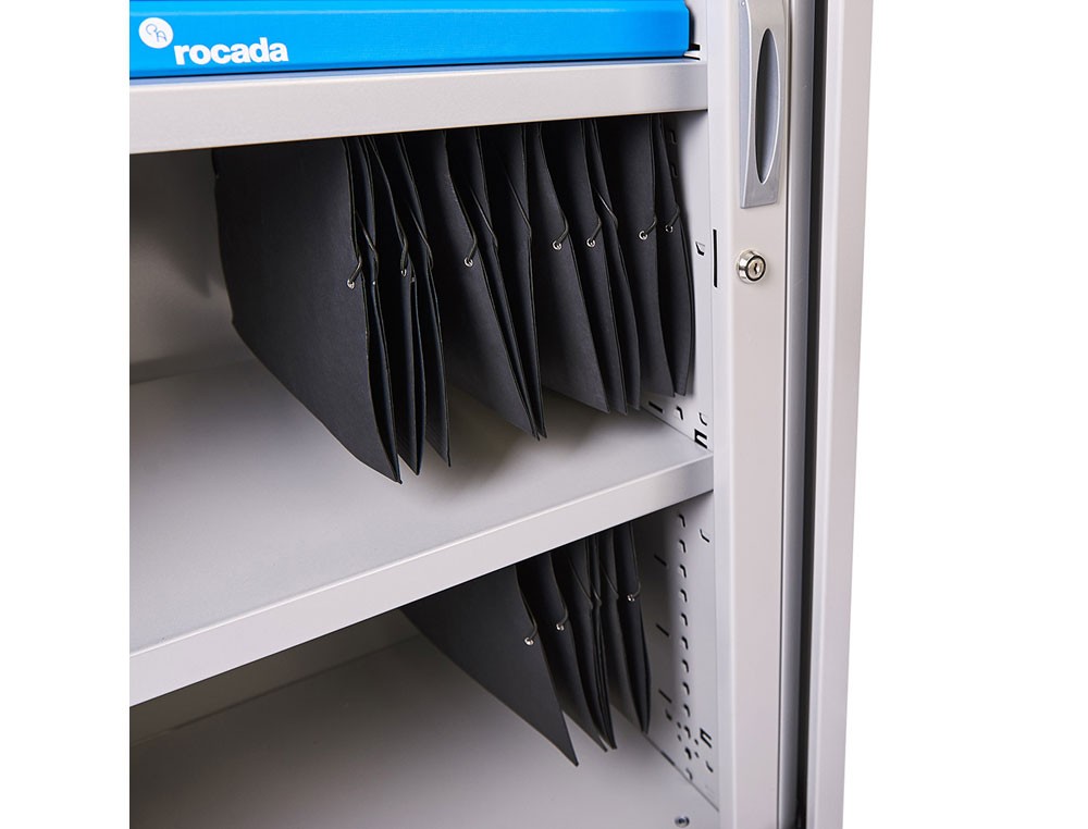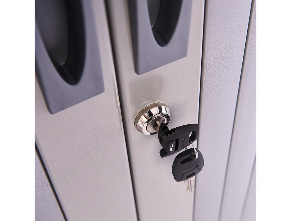 Armario metalico rocada dos puertas tipo persiana con dos baldas serie store 105x120x45 cm acabado gris/gris