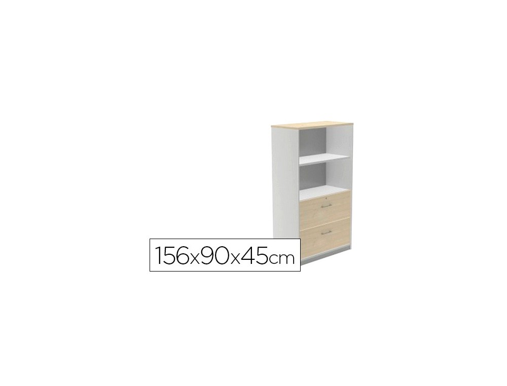 Armario rocada con un estantes y dos cajones inferiores serie store 156x90x45 cm acabado gris/bco