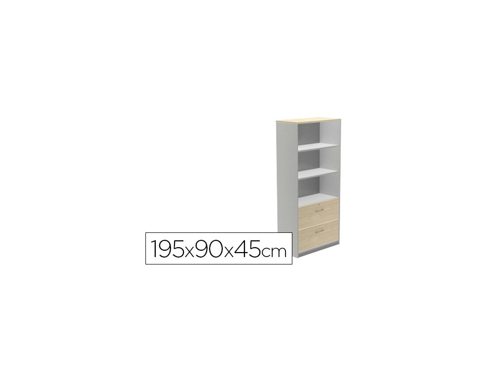 Armario rocada con dos estantes y dos cajones inferiores serie store 195x90x45 cm acabado gris/bco