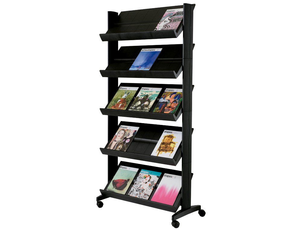 PaperflowExpositor paperflow de suelo movil metalico con 5 repisas color negro 140x1700x395 mm