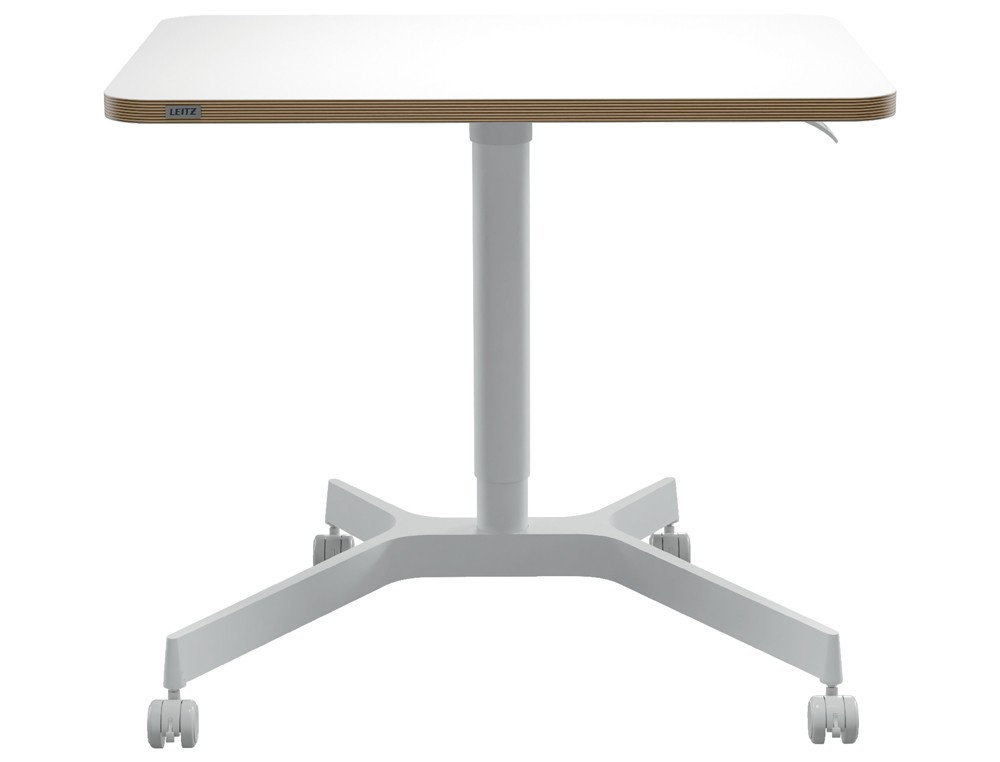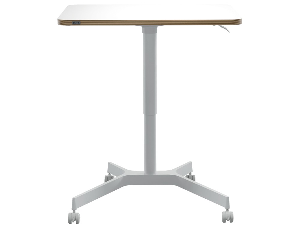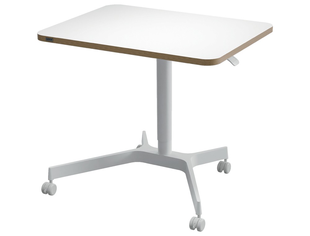 Mesa leitz ergo regulable en altura neumatica tablero 80x60 cm con 4 ruedas color blanco