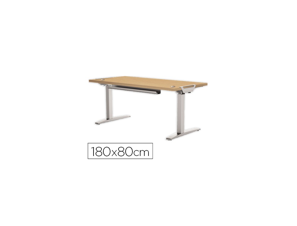 Mesa de oficina levado base metal acero pintado sistema electrico regulable altura tablero arce 180 x 80 cm