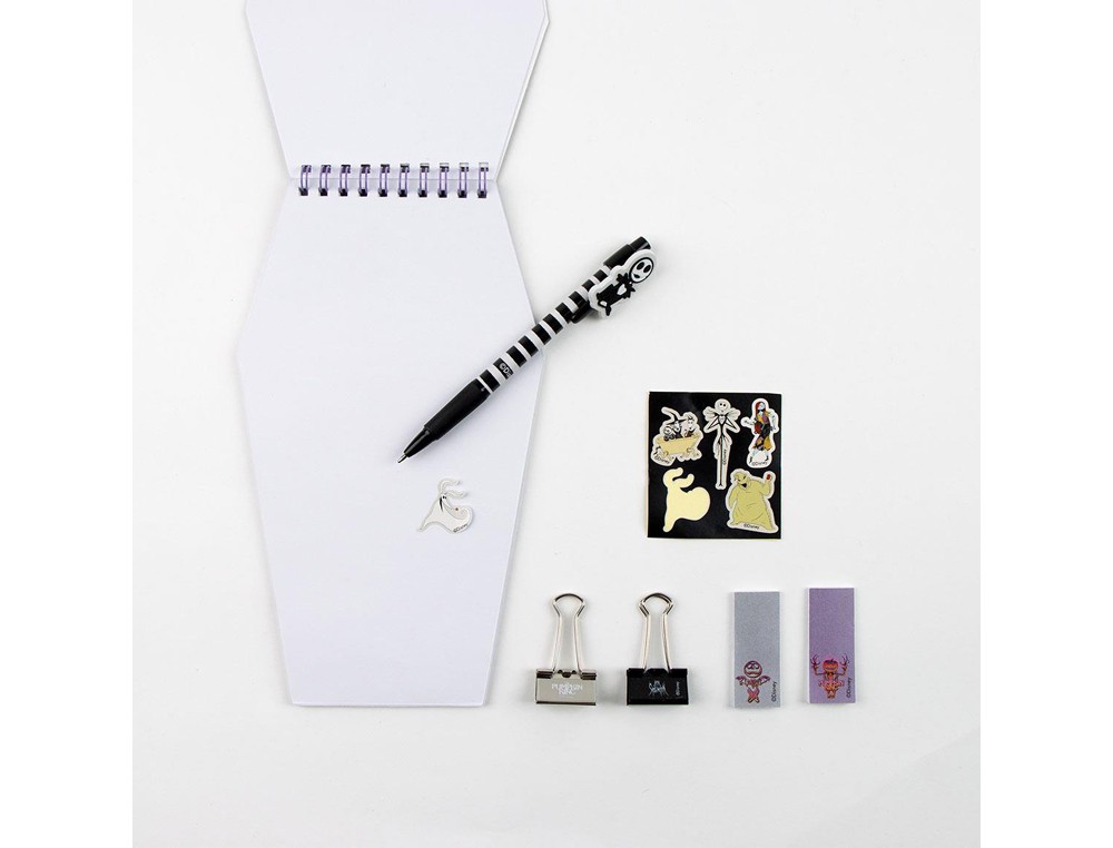 Adéntrate en el misterioso mundo de Jack Skellington con este exclusivo set de papelería de Nightmare Before Christmas. Perfecto para fans de la película, este set está diseñado para inspirar creatividad y agregar un toquegótico y único a tus notas y proyectos.