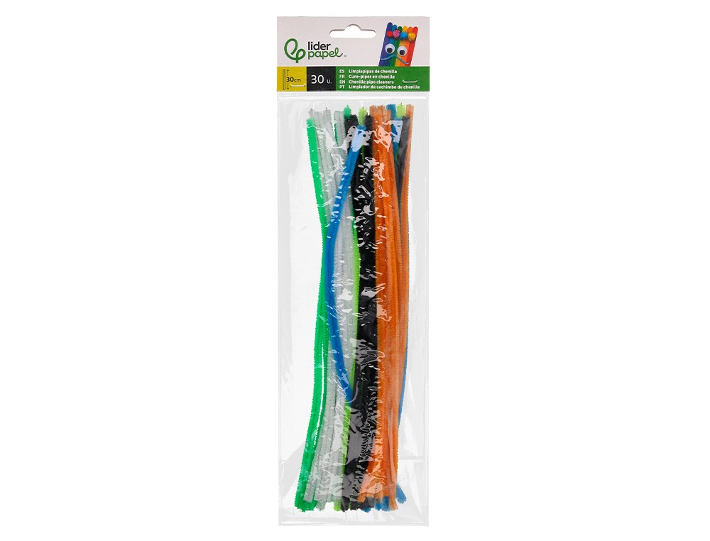 Limpiapipas de chenilla liderpapel 30 cm colores mate surtidos bolsa de 30 unidades