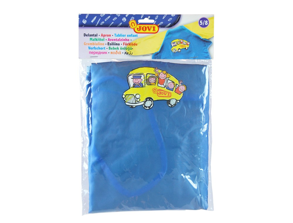 Delantal para proteger contra las manchas. Con cierre de velcro en la parte posterior y puños elásticos para fácil adaptación al brazo del niño. Ideal para uso escolar. Fabricado en poliéster 100%. Medidas de la manga: 44 cm. Longitud cuerpo: 55 cm.