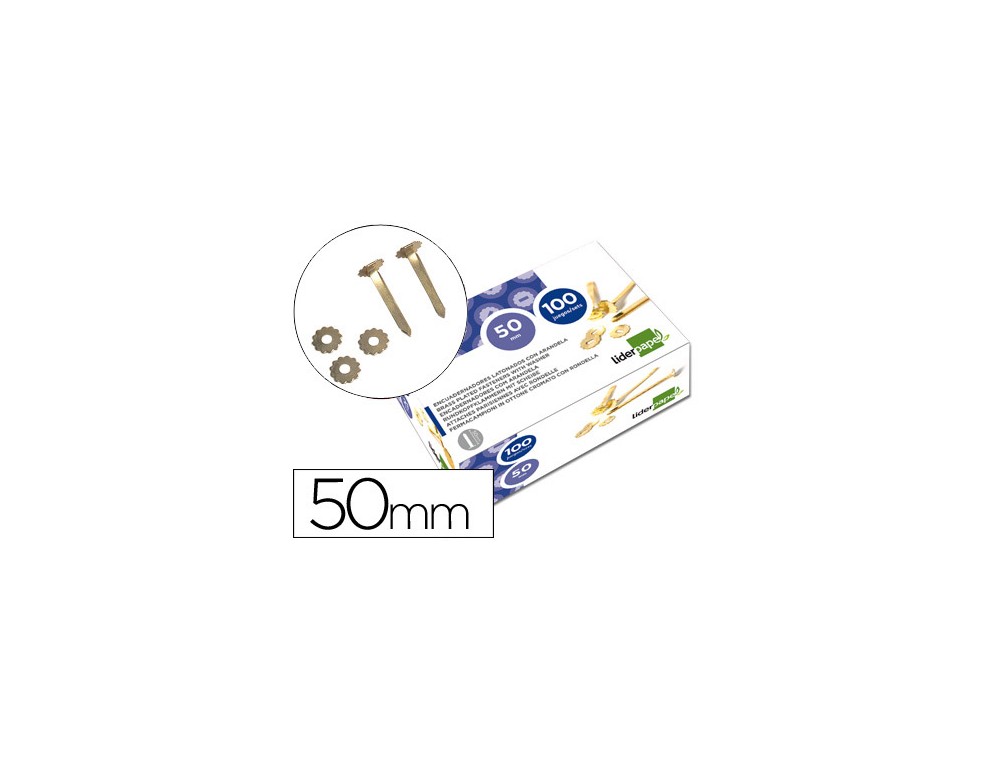 Encuadernadores liderpapel latonados con arandela 50 mm caja de 100 unidades