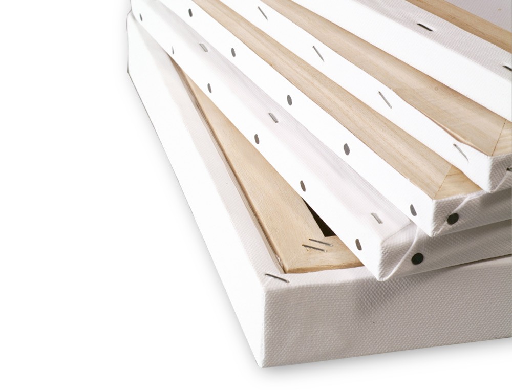Lienzo grapado de tela de algodón 100%. Libre de cloro y ácido. 280 g/m². Apto para acrílico y óleo. Con bordes de madera.