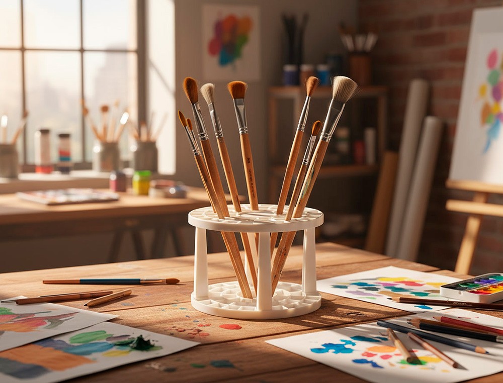 Organiza tus pinceles de manera eficiente con el soporte para pinceles de plástico Liderpapel. Este práctico soporte cuenta con 46 agujeros, proporcionando amplio espacio para mantener tus pinceles ordenados y al alcance de la mano. Con unas medidas de 14,5 x 14,5 x 10 cm, es compacto y fácil de colocar en cualquier espacio de trabajo. Fabricado en plástico resistente, este soporte es duradero y ligero. Los agujeros están diseñados para acomodar pinceles de diferentes tamaños, asegurando que cada herramienta tenga su lugar específico. Además, su diseño permite un secado adecuado de los pinceles, ayudando a mantener la forma de las cerdas y prolongar la vida útil de tus herramientas. Perfecto para artistas de todos los niveles, esteste soporte es una adición esencial para mantener tu espacio de trabajo organizado y tus pinceles en perfecto estado.