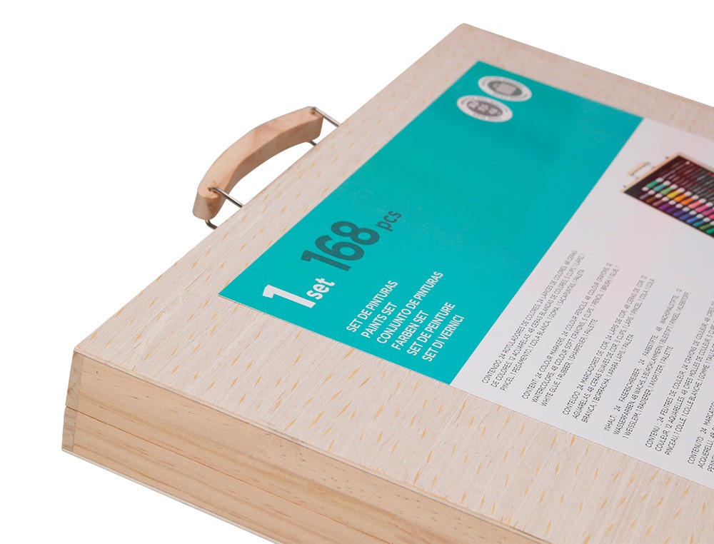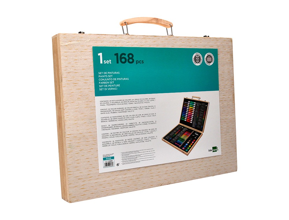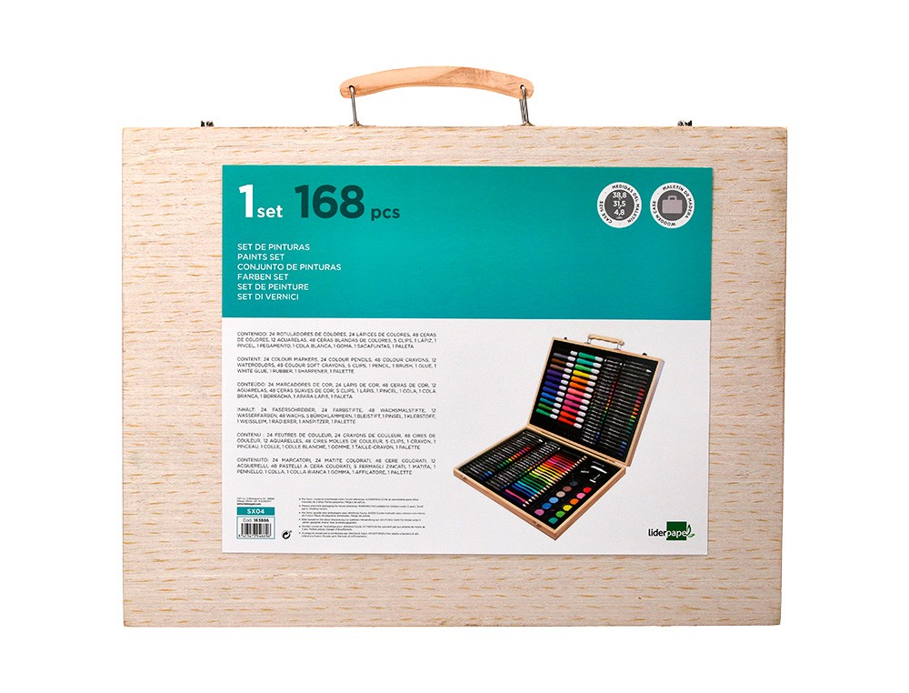 Estuche de pintura liderpapel madera 168 piezas maletin 39,3x30x4,8 cm