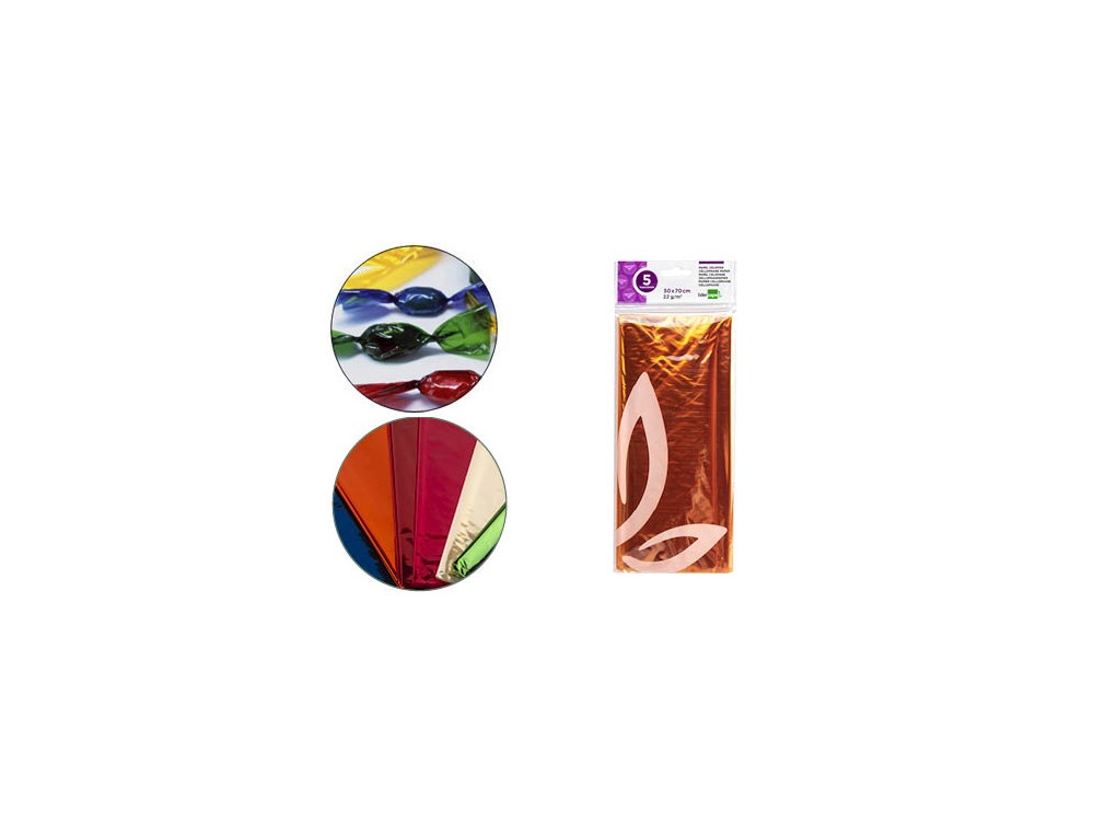 Gramaje: 22 g/m². Colores brillantes Presentado en bolsas de celofán transparentes que facilita su manipulación. Ideal para trabajos manuales. Medidas de la hoja: 50 x 70 cm.