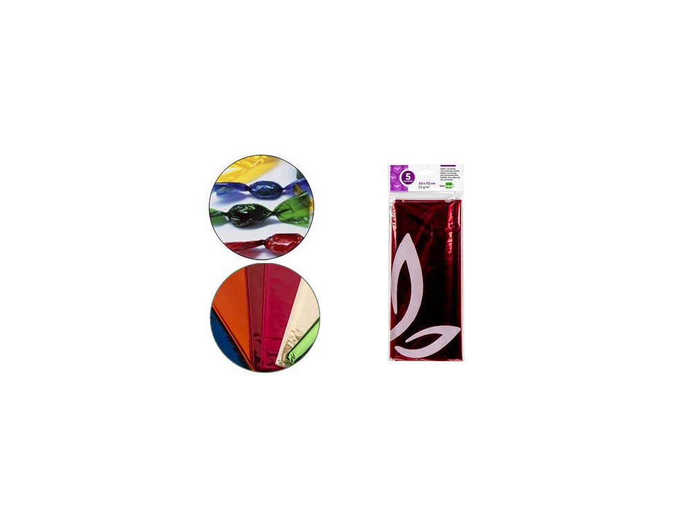 Gramaje: 22 g/m². Colores brillantes Presentado en bolsas de celofán transparentes que facilita su manipulación. Ideal para trabajos manuales. Medidas de la hoja: 50 x 70 cm.
