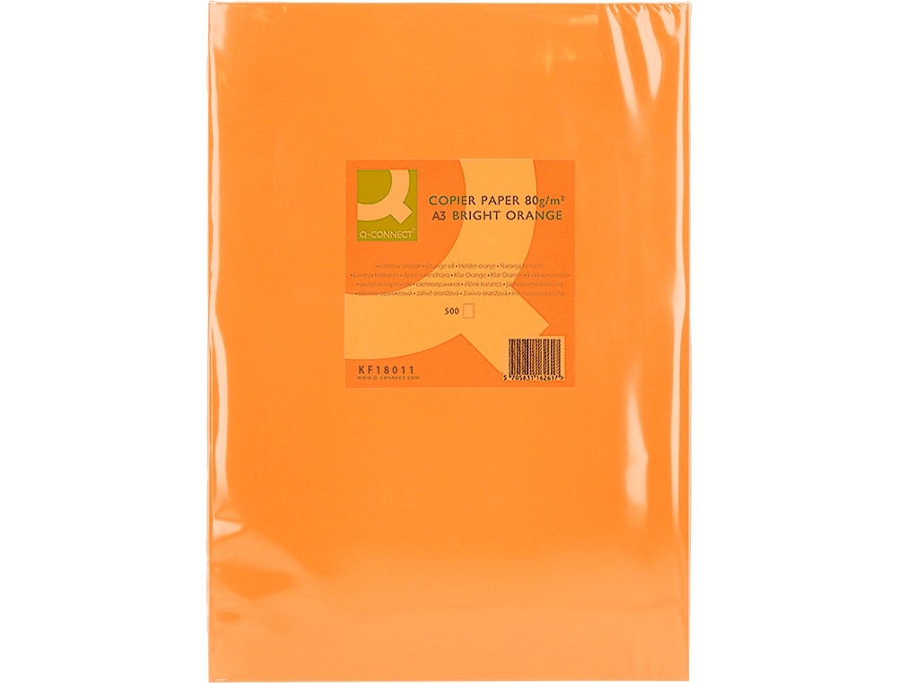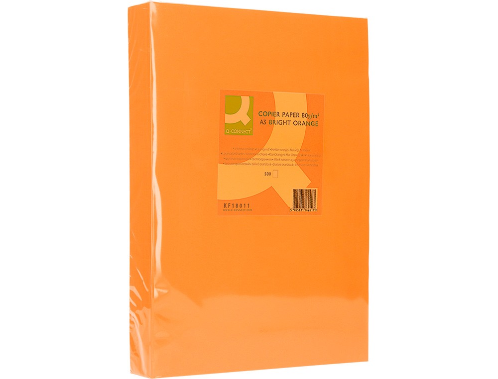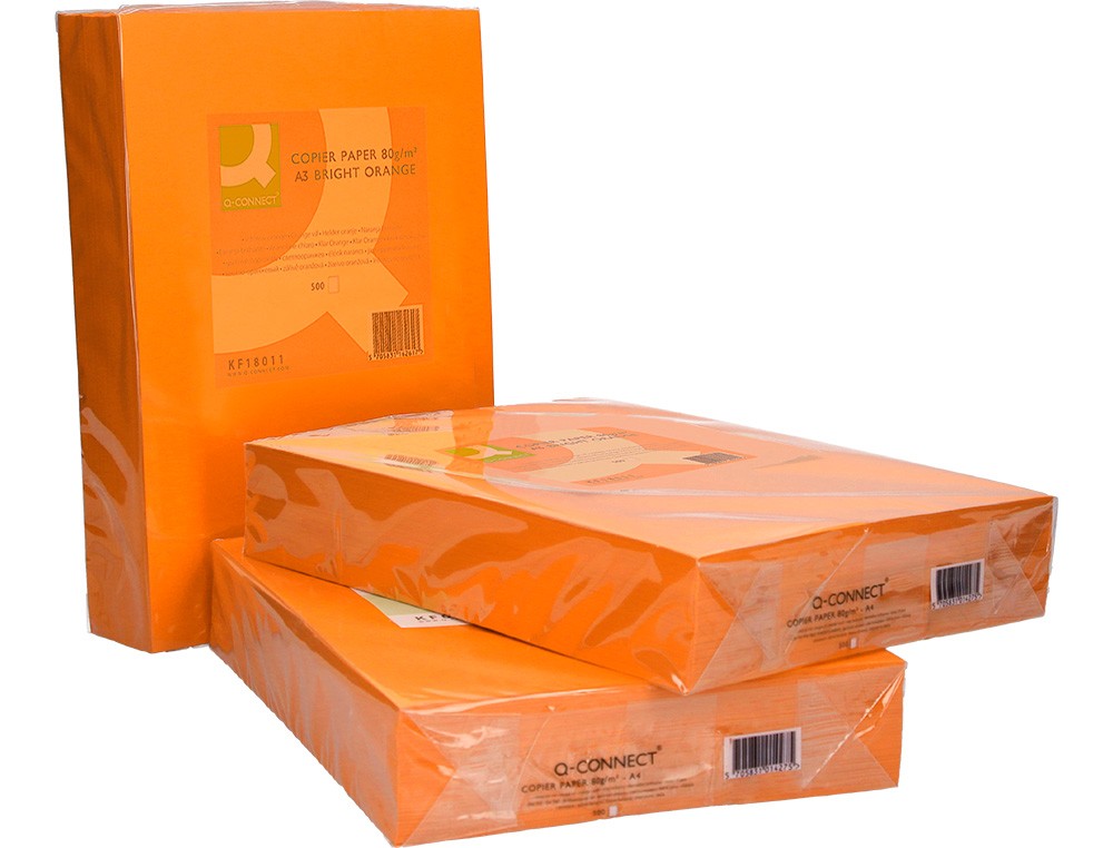 Papel color q-connect din a3 80 gr naranja intenso paquete de 500 hojas