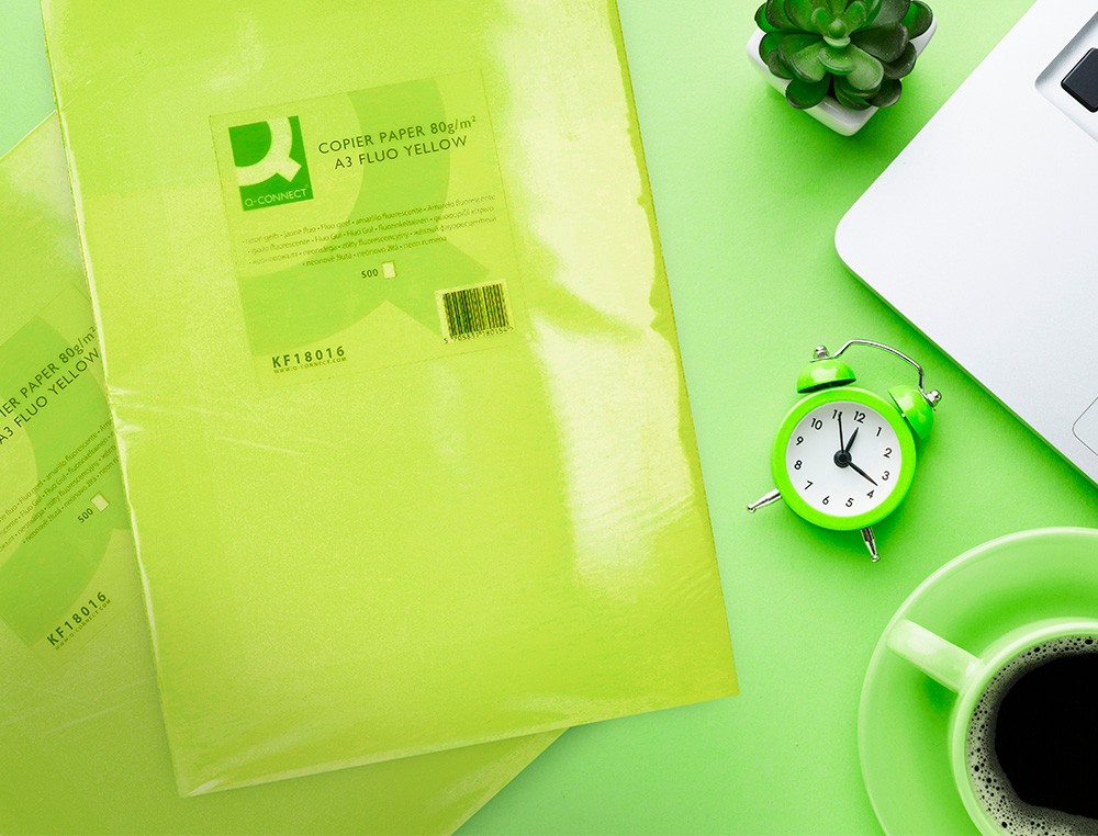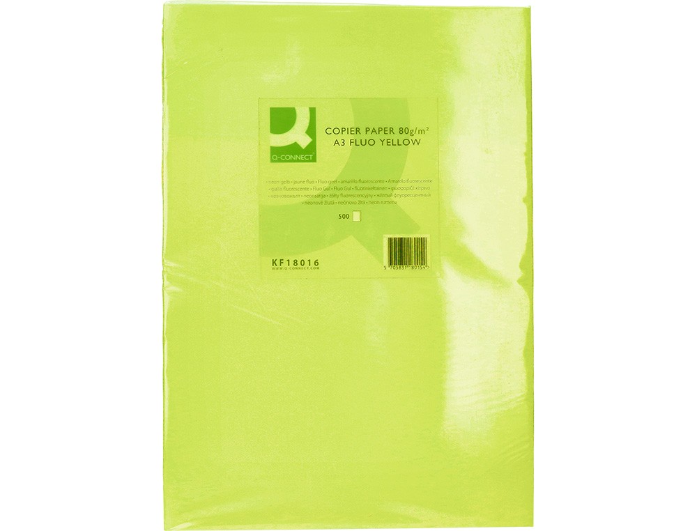 Papel color q-connect din a3 80gr verde neon paquete de 500 hojas