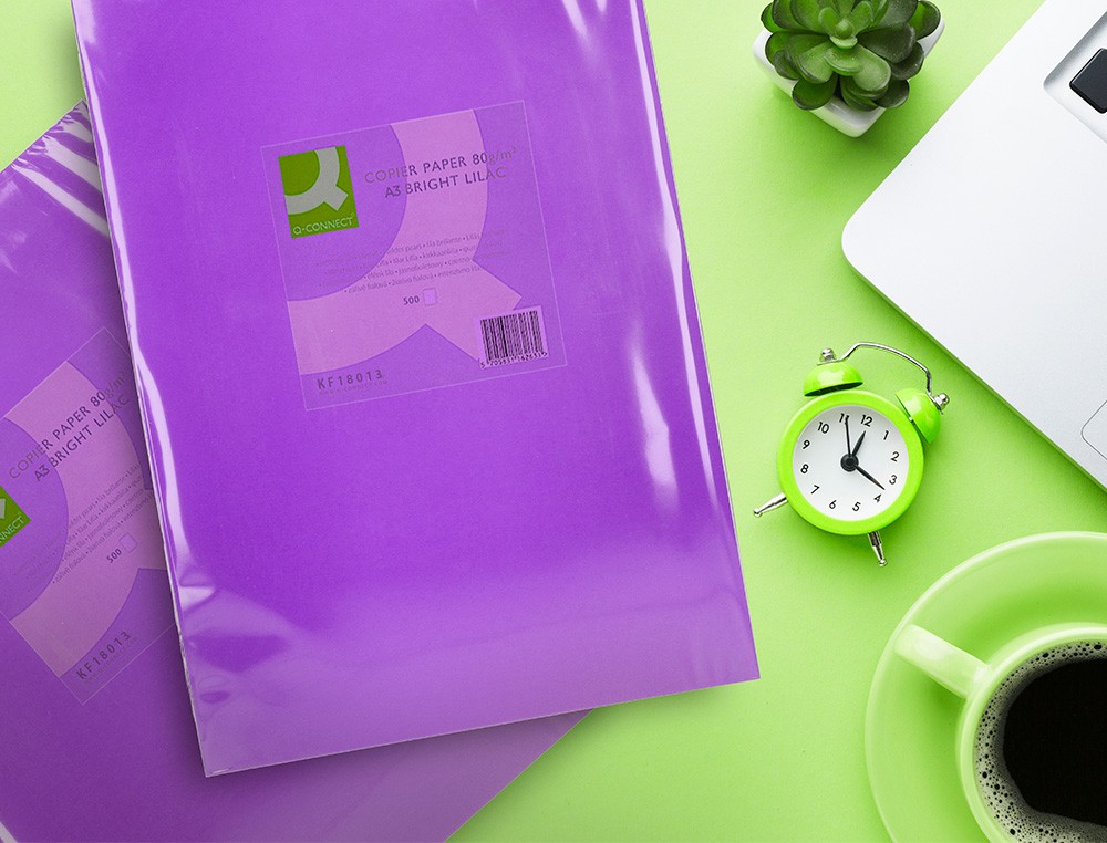 Papel color q-connect din a3 80gr lila paquete de 500 hojas