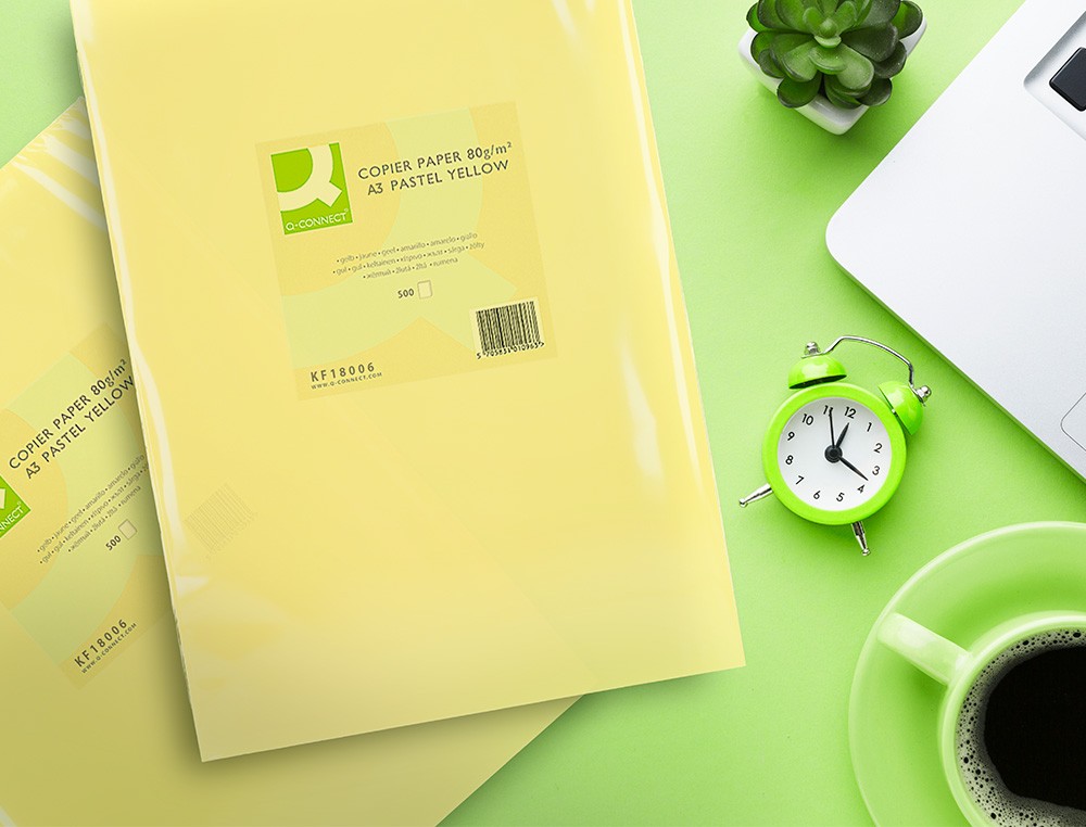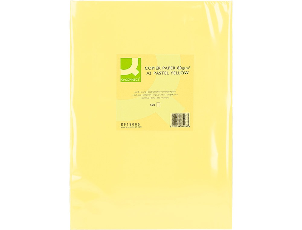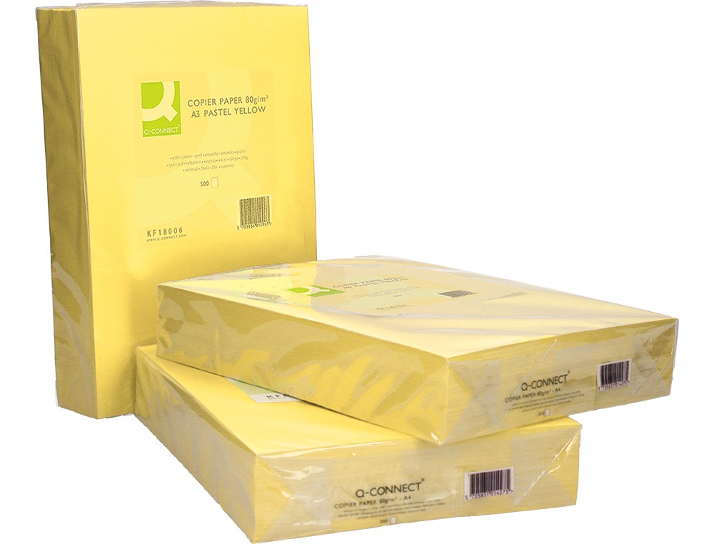 Papel color q-connect din a3 80gr amarillo paquete de 500 hojas