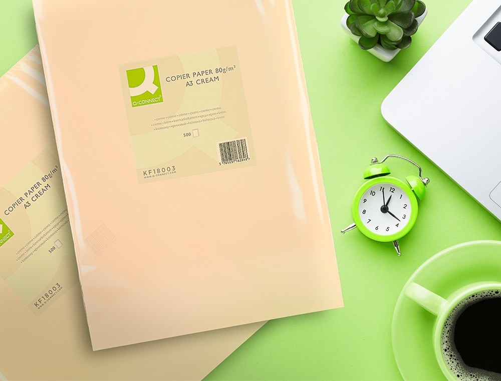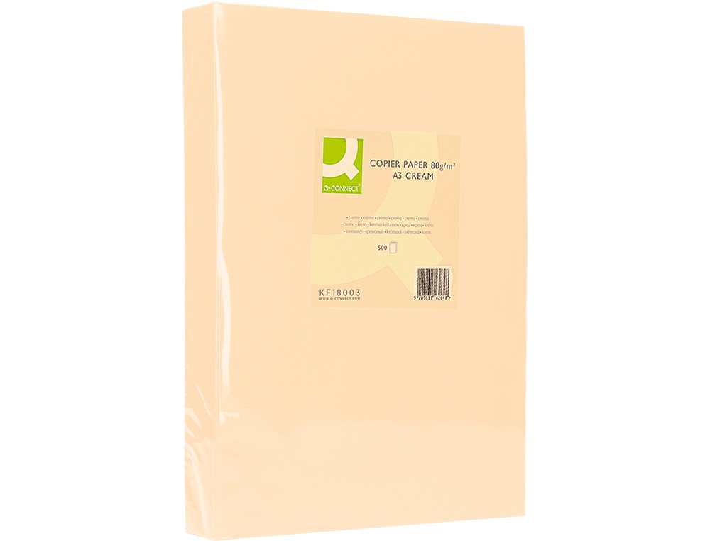 Papel color q-connect din a3 80gr crema paquete de 500 hojas