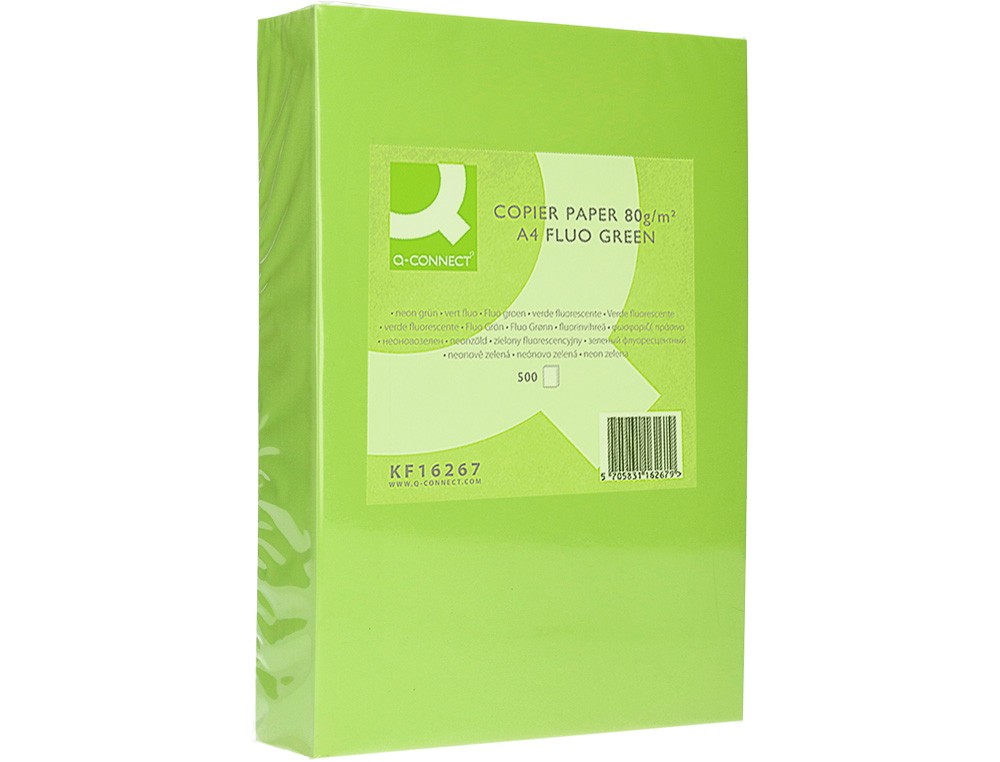 Papel color q-connect din a4 80gr verde neon paquete de 500 hojas