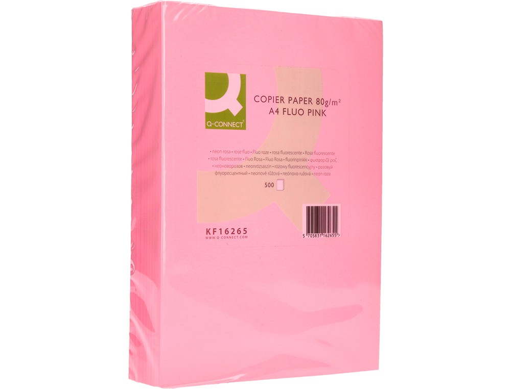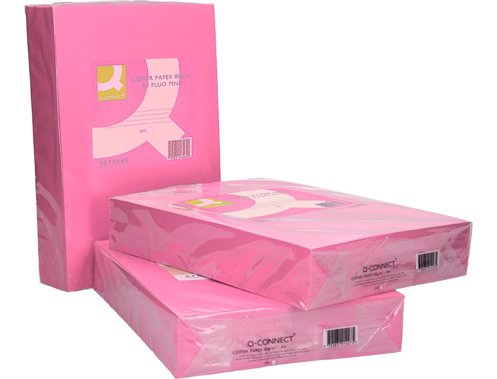 Papel color q-connect din a4 80gr rosa neon paquete de 500 hojas