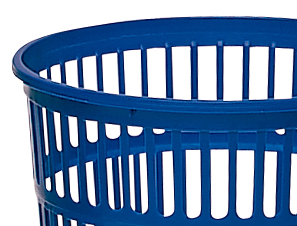 Papelera de rejilla muy resistente fabricada en poliestireno. Capacidad: 15 litros. Medidas: Ø 28,5 x 29 cm.