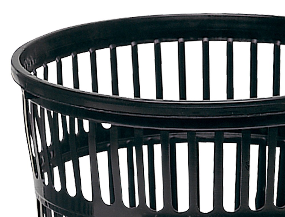 Papelera de rejilla muy resistente fabricada en poliestireno. Capacidad: 15 litros. Medidas: Ø 28,5 x 29 cm.