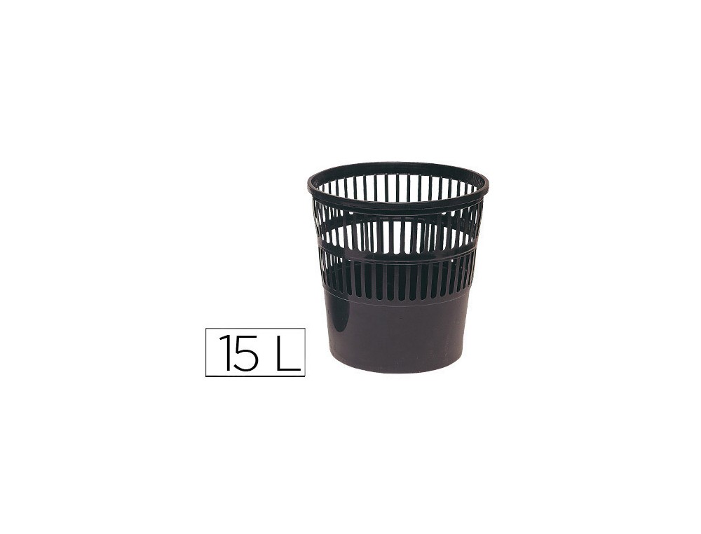 Papelera plastico q-connect 15 litros rejilla color negro 285x290 mm