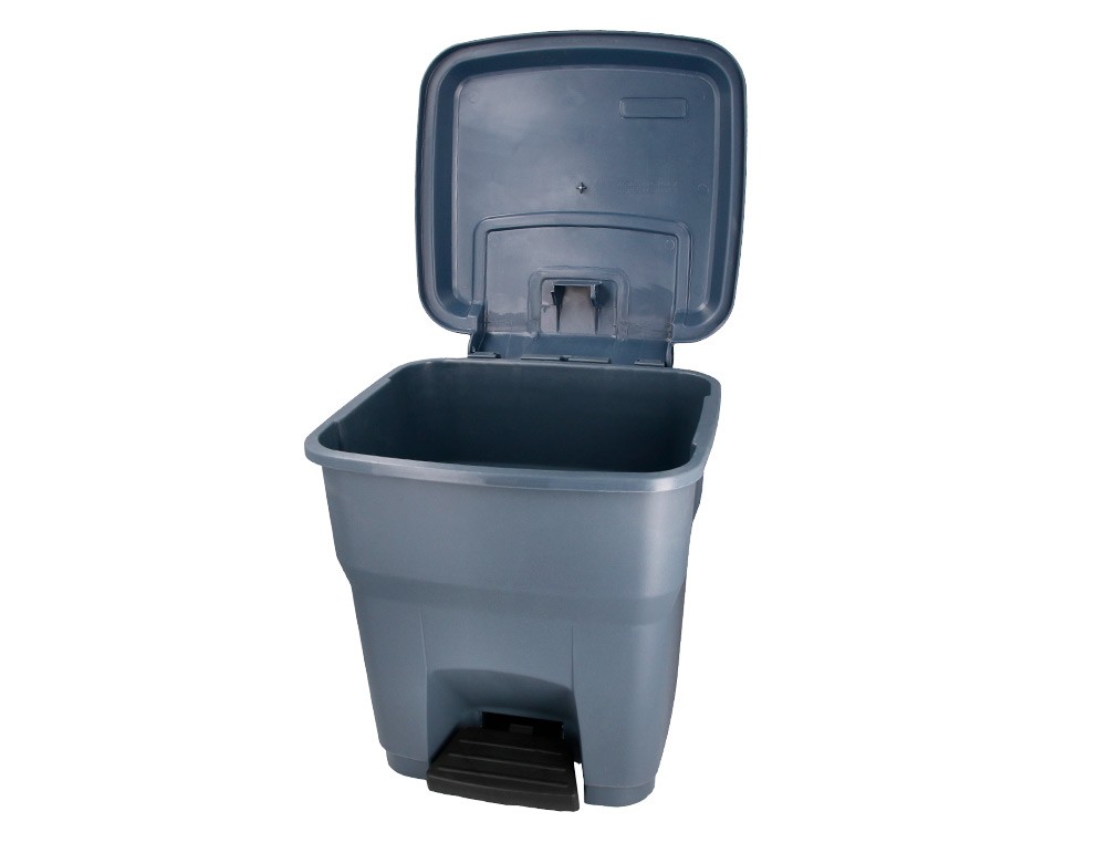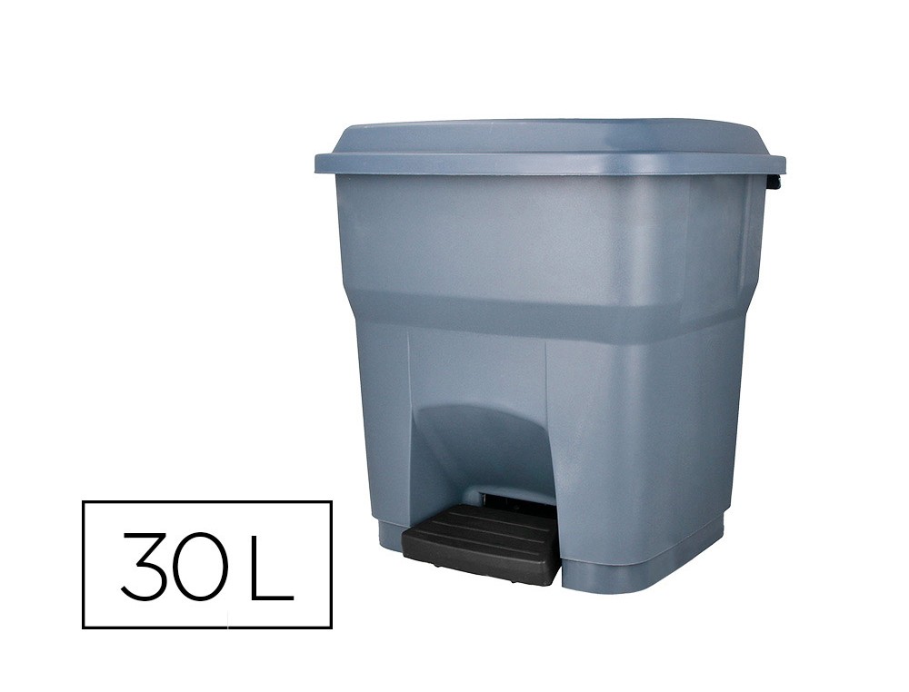 Papelera contenedor q-connect plastico con tapa y pedal 30 litros gris 395x395x420 mm