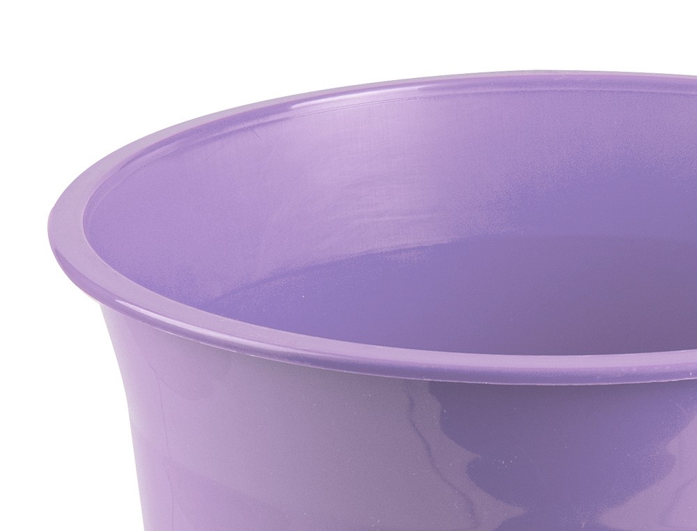 Papelera de plástico muy resistente. Capacidad: 13 litros. Medidas: ø 21x29 cm. Color lavanda opaco.