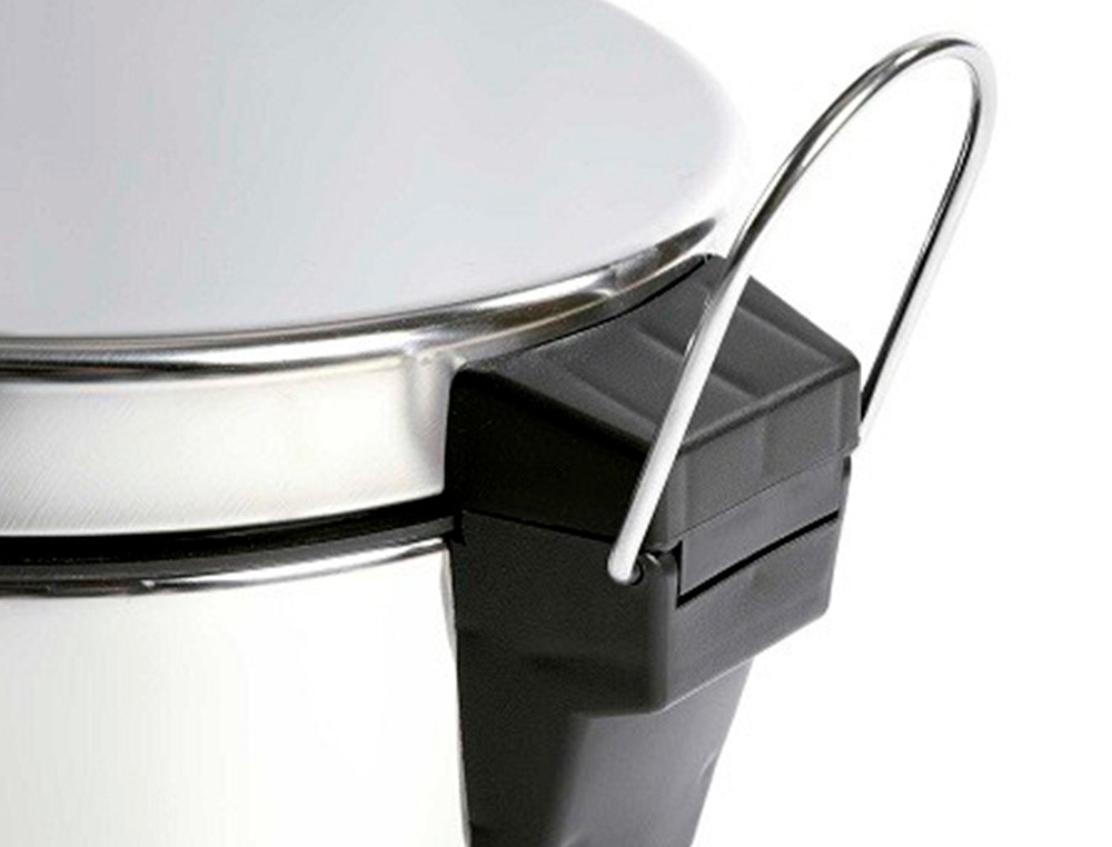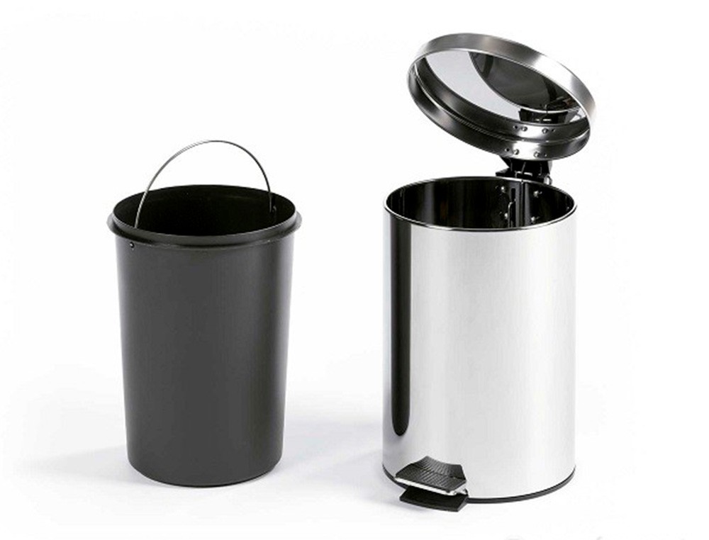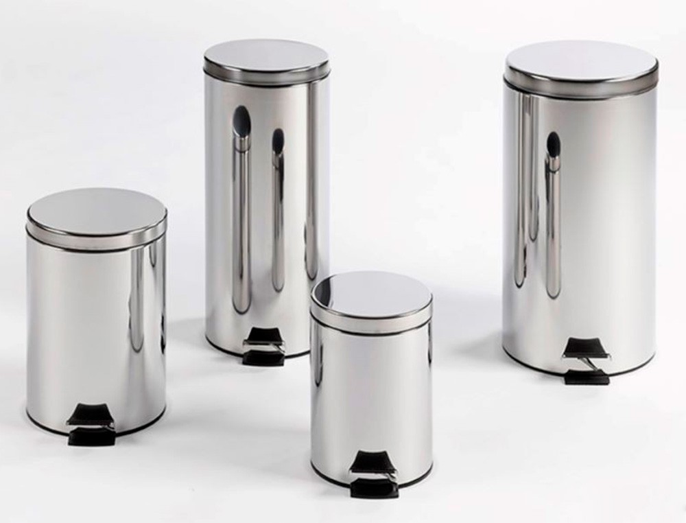Papelera fabricada en metal con acabado espejo. Con pedal para una mayor comodidad.