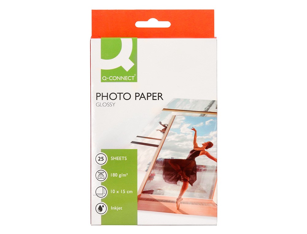 Papel q-connect foto glossy kf01905 10x15 cm digital photo para ink-jet bolsa de 25 hojas de 180 gr