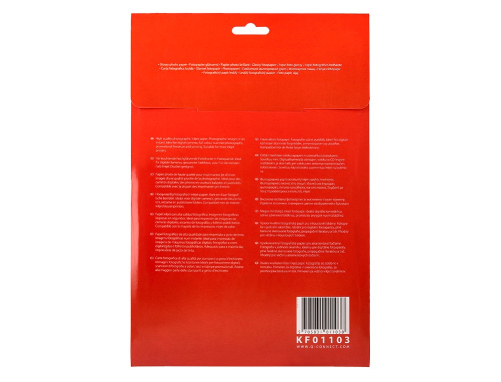 Papel q-connect foto glossy kf01103 din a4 digital photo para ink-jet bolsa de 20 hojas de 180 gr