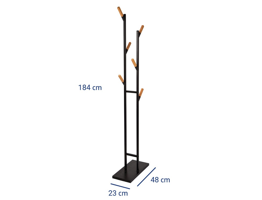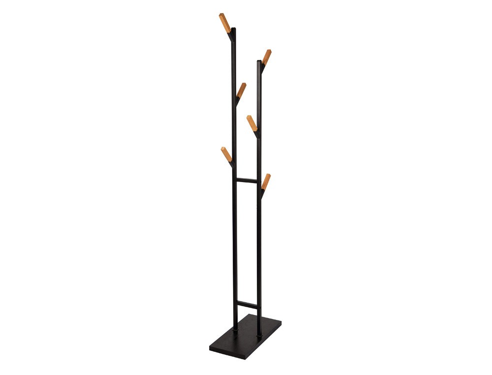 Perchero metalico maul rima pie 6 colgadores de madera color negro 1840x480x230 mm