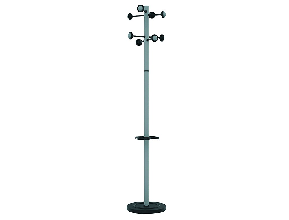 Perchero metalico unilux accueil pie 8 colgadores con paraguero y bandeja goteo gris metalizado 177x38 cm