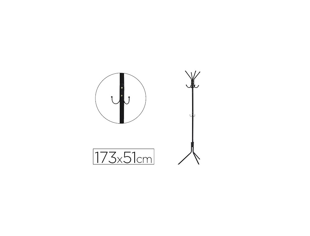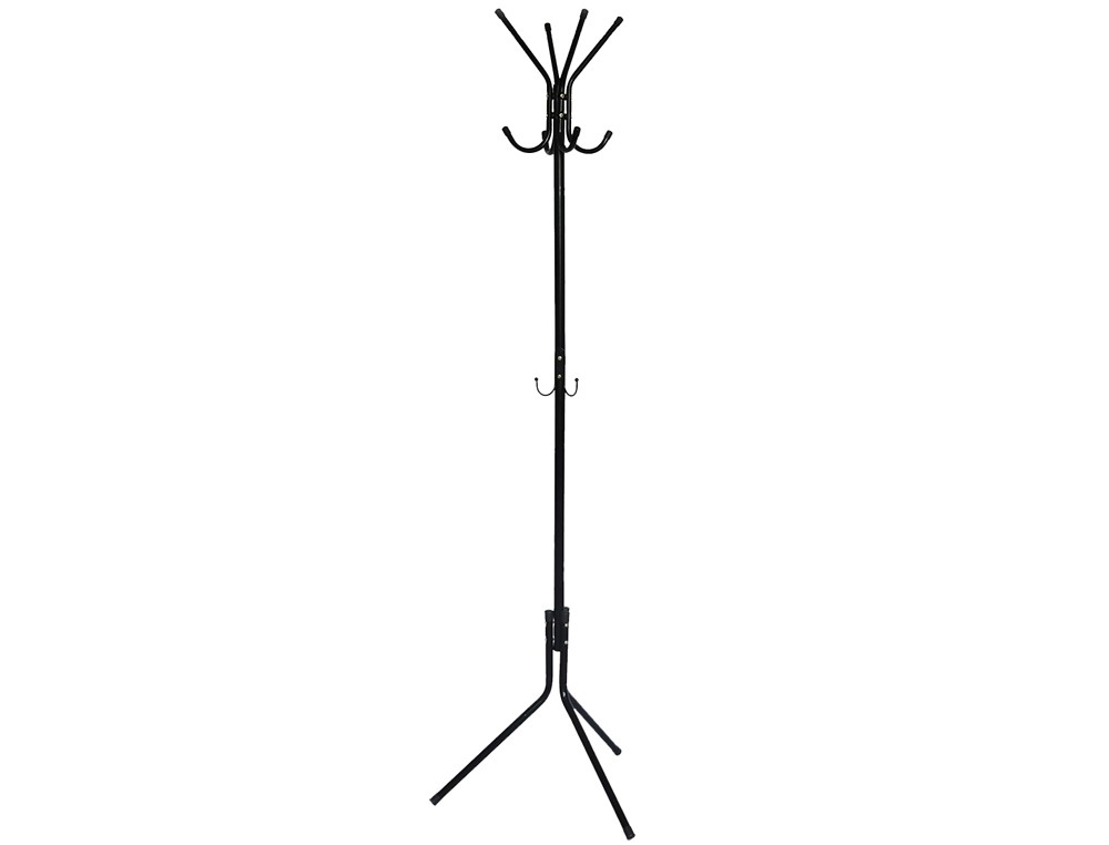 Perchero metálico muy estable de diseño sencillo y moderno. Con 8 colgadores y ganchos portabolsos. Con acabado redondeado para proteger las prendas de ropa. Medidas: 51 x 173 cm.