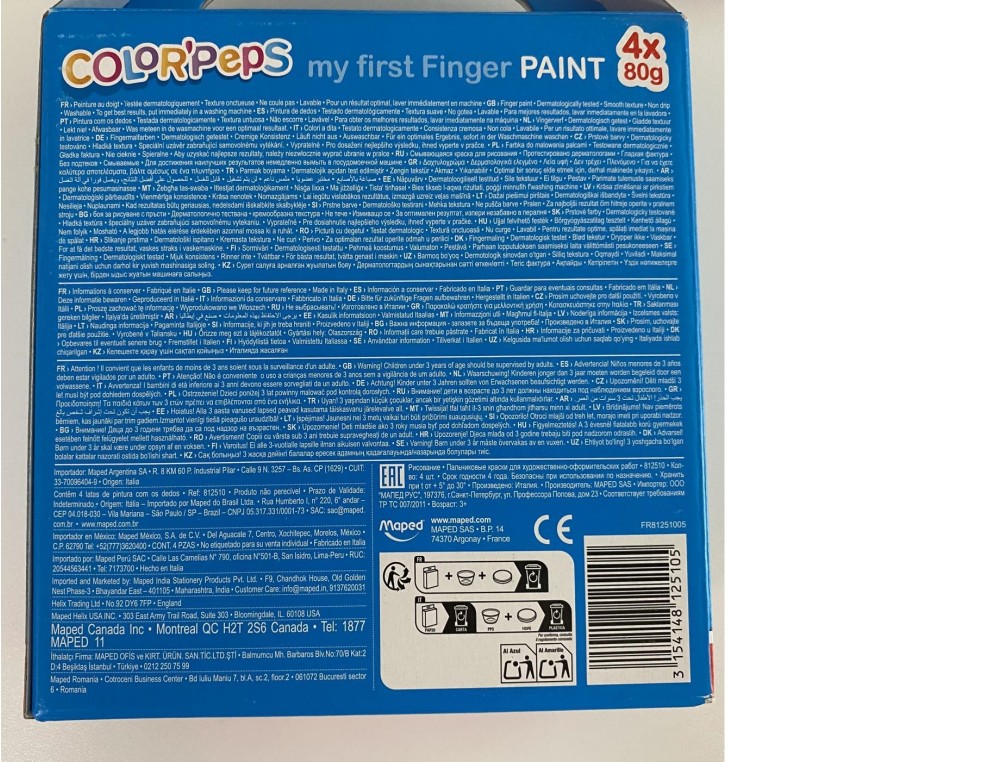 Pintura a dedos maped color peps caja de 4 botes colores surtidos 80 gr