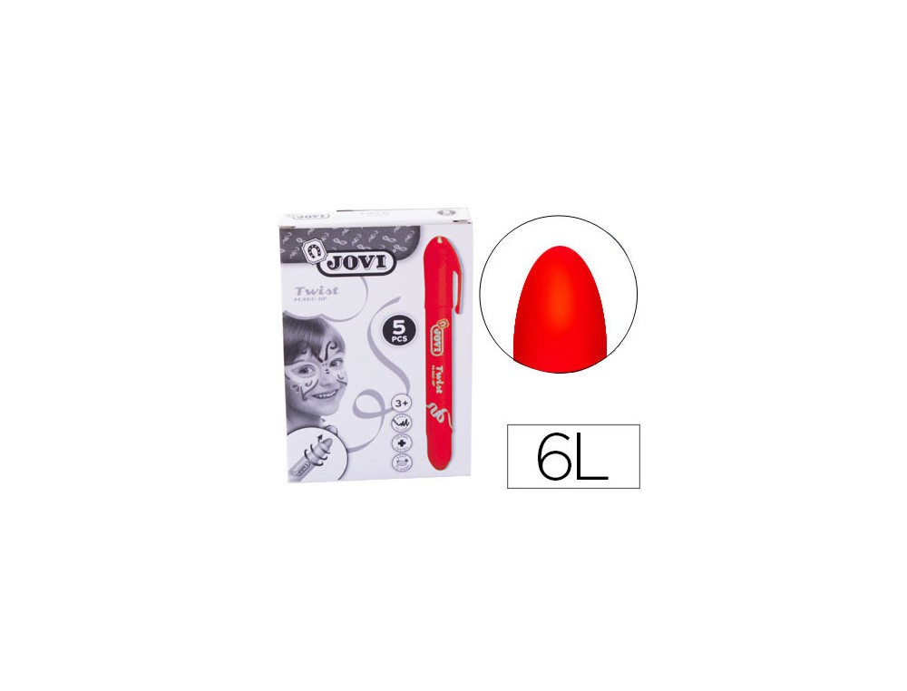 Maquillaje en barra de aplicación agradable y suave. Sistema retráctil giratorio. Alto poder cubriente. Resistencia térmica. Pigmentos cosméticos aptos para el contacto con la piel. Se le puede sacar punta. Recomendado a partir de 3 años.