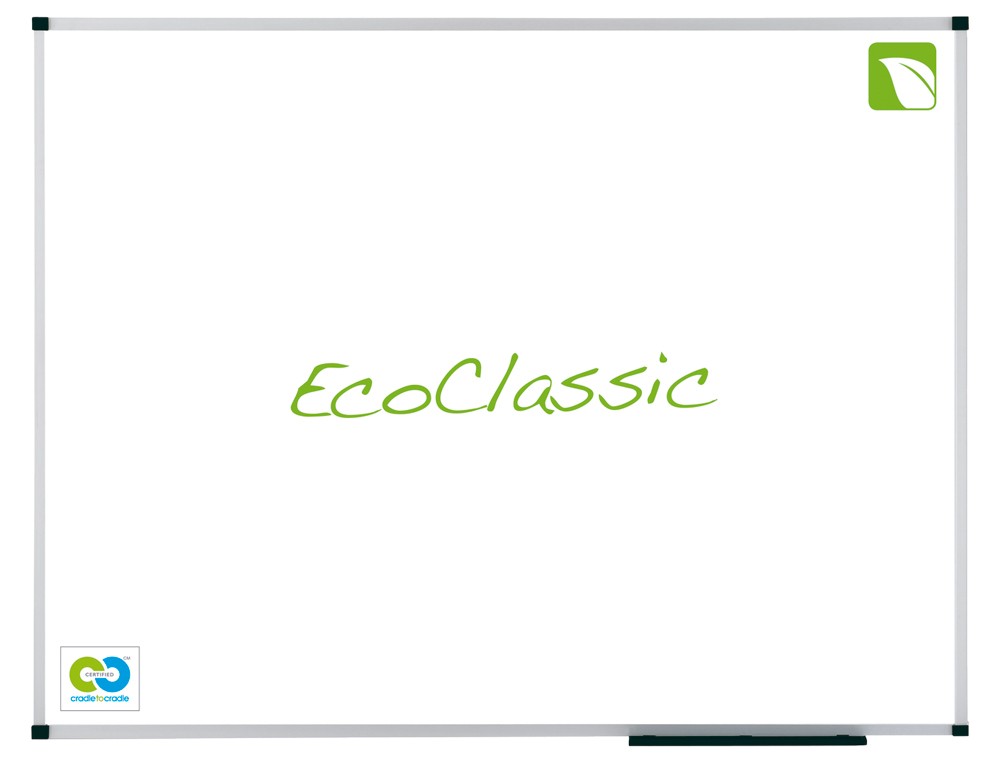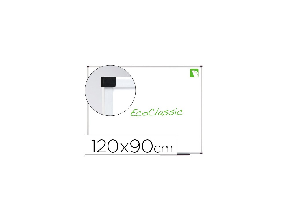 Pizarra blanca ecológica. Superficie magnética de acero vitrificado adecuada para un uso frecuente debido a su legibilidad superior con alta resistencia a manchas de tinta, marcas de rotulador, arañazos y abolladuras. Marco de aluminio anodizado de alta calidad. Fabricada en un 40 % con materiales reciclados. Garantía de por vida. Equipo de fijación a la pared incluido. Medidas: 120 x 90 cm.