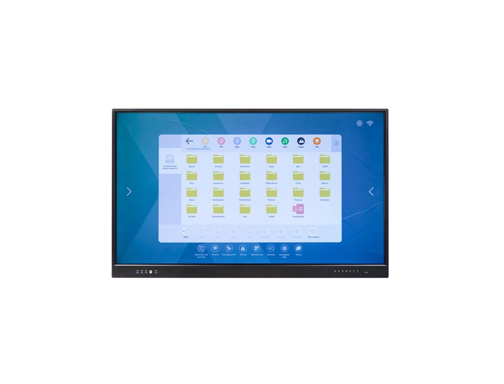 Monitor interactivo diseñado para mejorar las necesidades de comunicación en el sector educativo y sector privado de empresas. Equipado con sistema operativo Android 14 Resolución 4K UHD. Acceso a internet y WIFI integrado. Sistema mirroring para visualizar e interactuar con varios dispositivos simultáneamente. Altavoces incorporados fabricados con materiales de máxima calidad. Carcasa realizada en acero para una máxima protección exterior. Cristal templado de 4 mm con un mínimo índice de fricción para una ágil utilización y máxima protección ante posibles golpes, permitiendo una limpieza segura con cualquier producto de limpieza. Pantalla multitáctil. Grabación de vídeo y audio. Lector de archivos Office y PDF. Editor de archivos Office. Alta calidad de imagen y sonido. Generador de códigos QR y compatible con Google Meet. 5 años de garantía y SAT en España y Portugal.