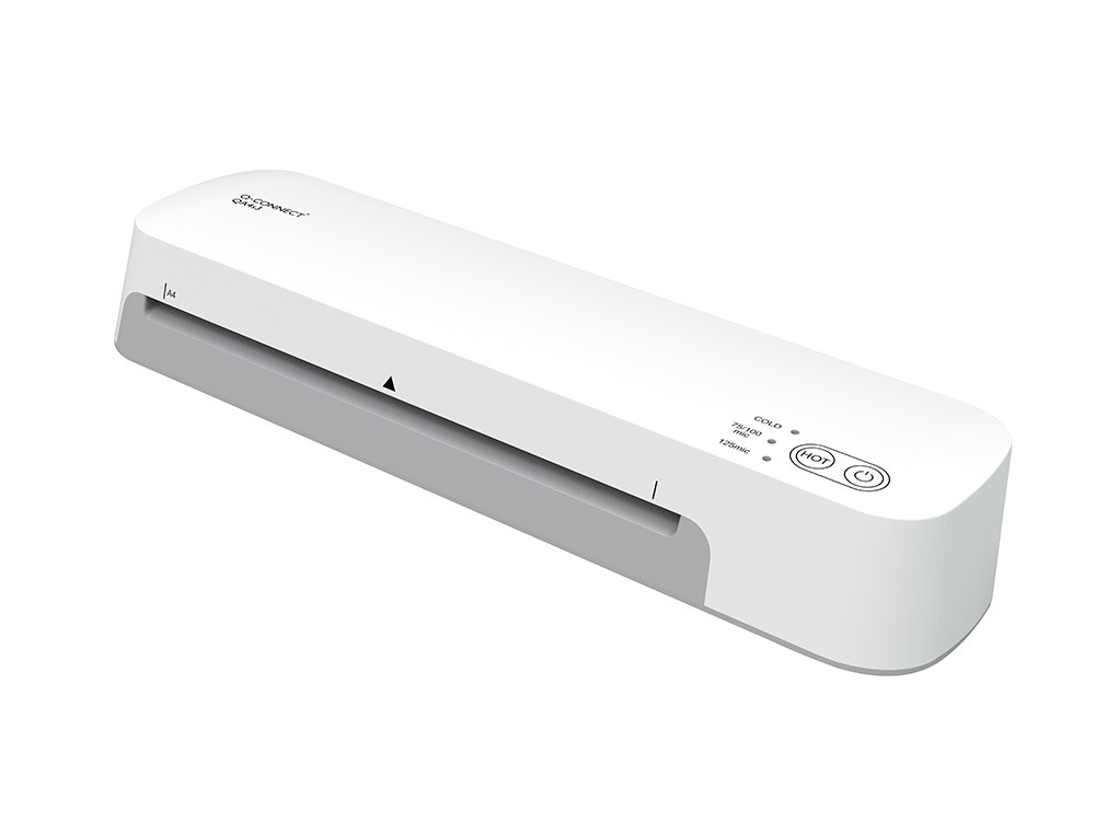La plastificadora Q-Connect A4 es una herramienta práctica y eficiente, ideal para proteger documentos de hasta tamaño A4, incluyendo tarjetas de visita y otros materiales de oficina. Su diseño compacto (360 x 112 x 65 mm)y ligero (1,1 kg) la hace fácil de transportar y almacenar. Ofrece un tie mpo de precalentamiento rápido de solo 1 minuto y una velocidad de plastificación de 420 mm por minuto, lo que permite un trabajo ágil y continuo. Admite fundas de 75 a 125 micras de grosor, con un ancho máximo de plastificación de 235 mm. Equipada con un sistema de laminado en caliente y en frío mediante 2 rodillos, esta máquina garantiza resultados uniformes y profesionales. Además, incorpora luces indicadoras de estado (listo y selecciónde grosor de funda) y una función \"Jam Release\" en la parte trasera para liberar atascos fácilmente. Funciona con un consumo de 400W y requiere unaalimentación de 230V/50Hz.