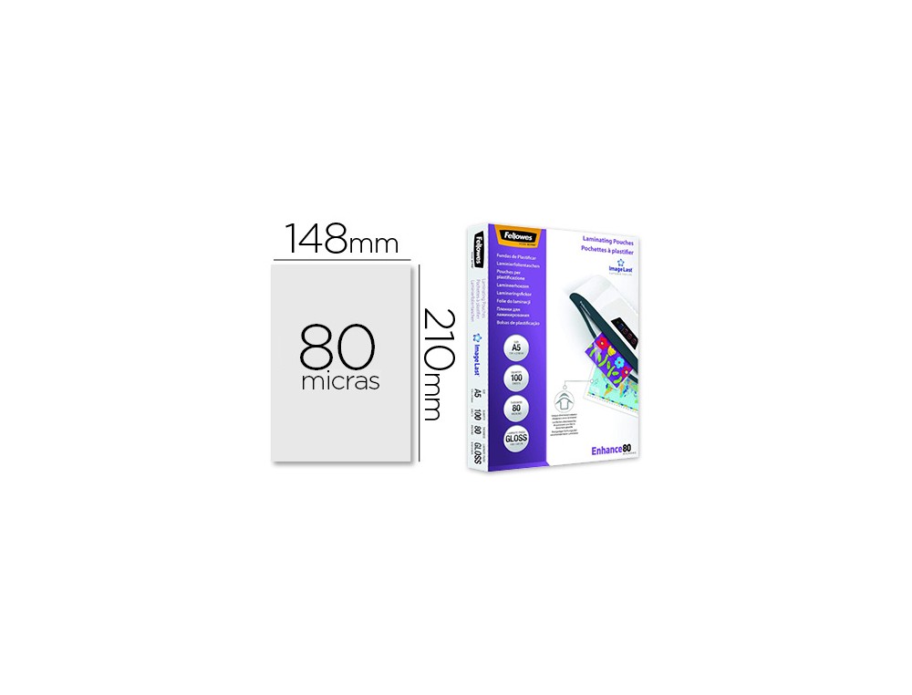 Bolsa de plastificar fellowes brillo din a5 80 mc pack 100 unidades