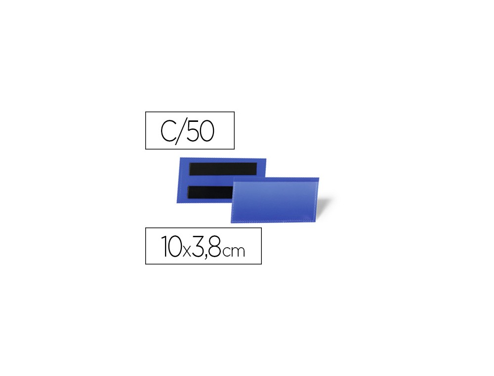 Funda durable magnetica 100x38 mm plastico azul ventana transparente pack de 50 unidades