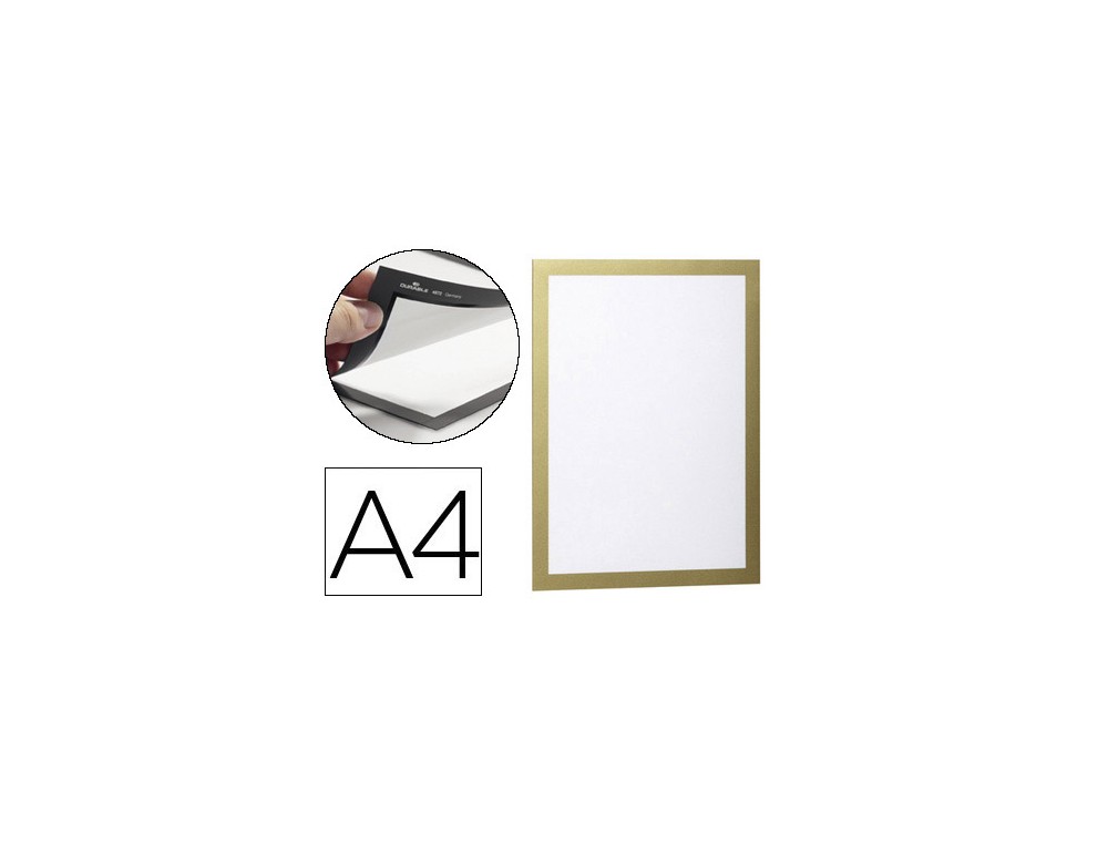 Marco porta anuncios durable pp magnetico din a4 dorso adhesivo removible color oro pack de 2 unidades