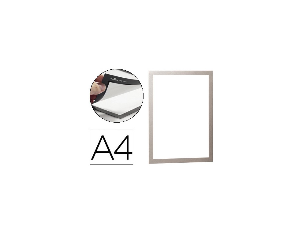 Marco porta anuncios durable pp magnetico din a4 dorso adhesivo removible color plata pack de 2 unidades