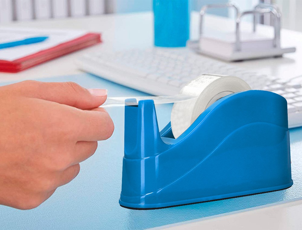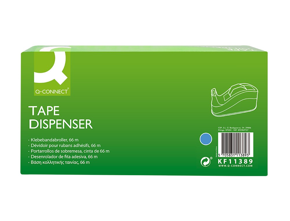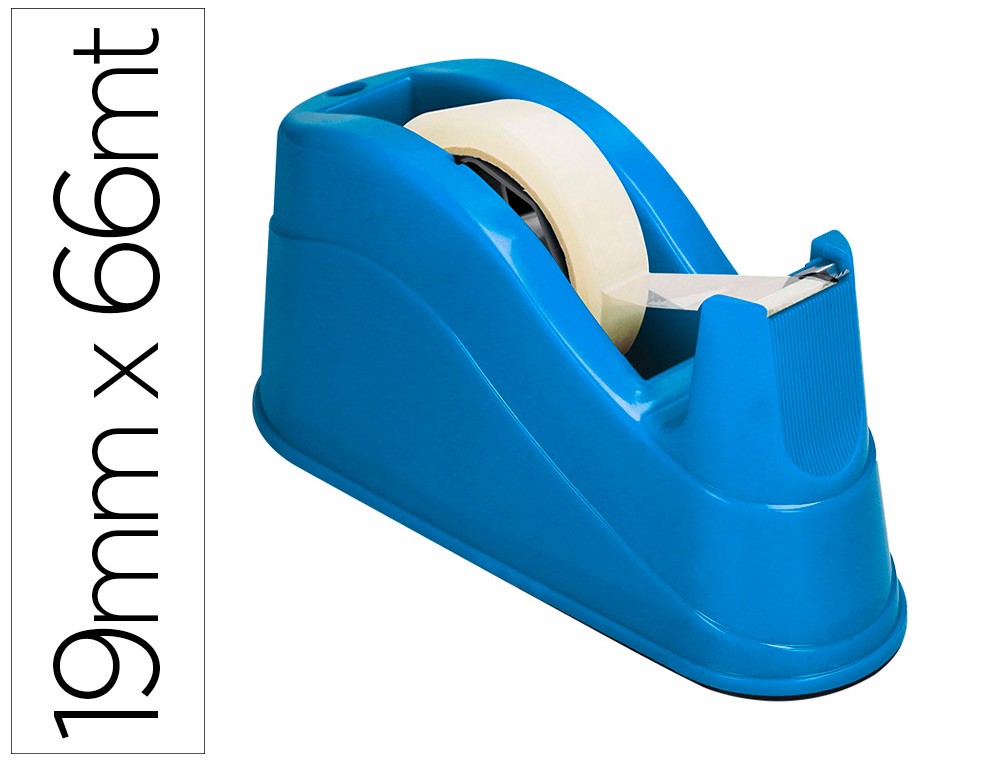 Portarrollo sobremesa q-connect plastico para cintas de 66 mt color azul 220x100x70 mm