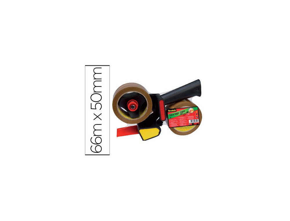 Portarrollo scotch para embalaje heavy duty bajo ruido con 2 rollos de cintas marron 50mm x 66mt