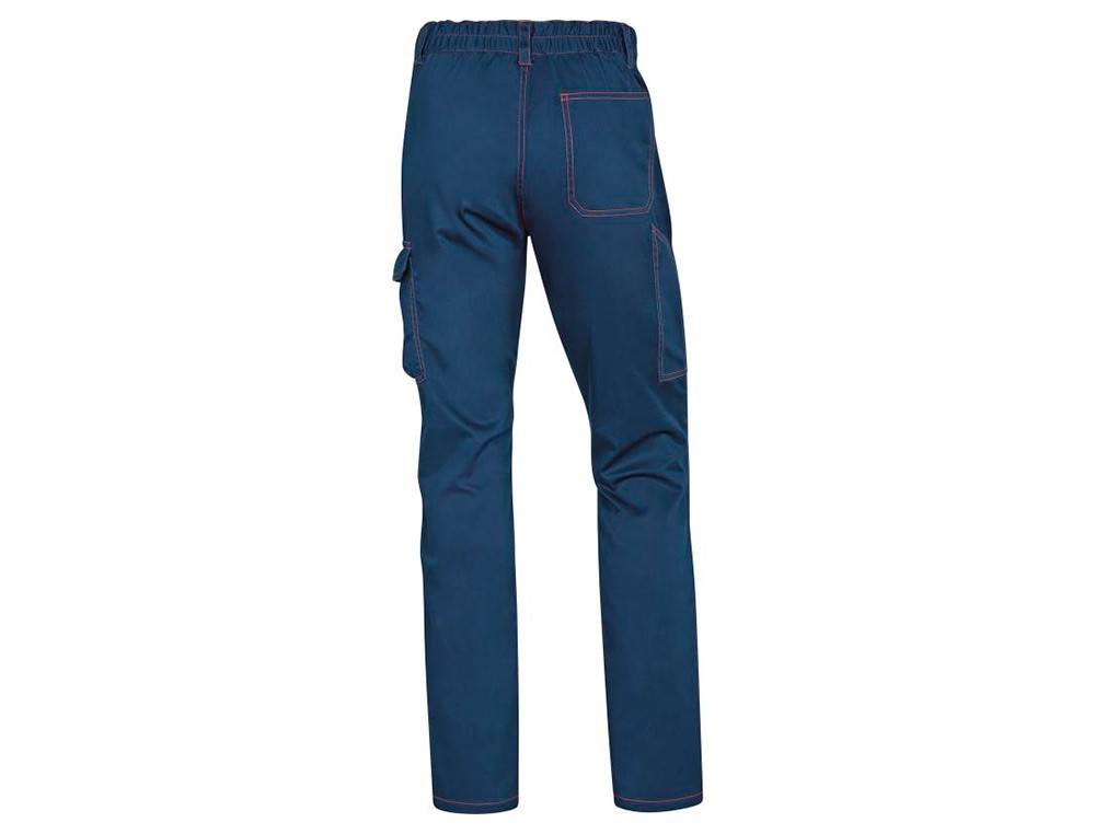 Pantalon de trabajo deltaplus cintura elastica 5 bolsillos color azul marino / naranja talla xxl