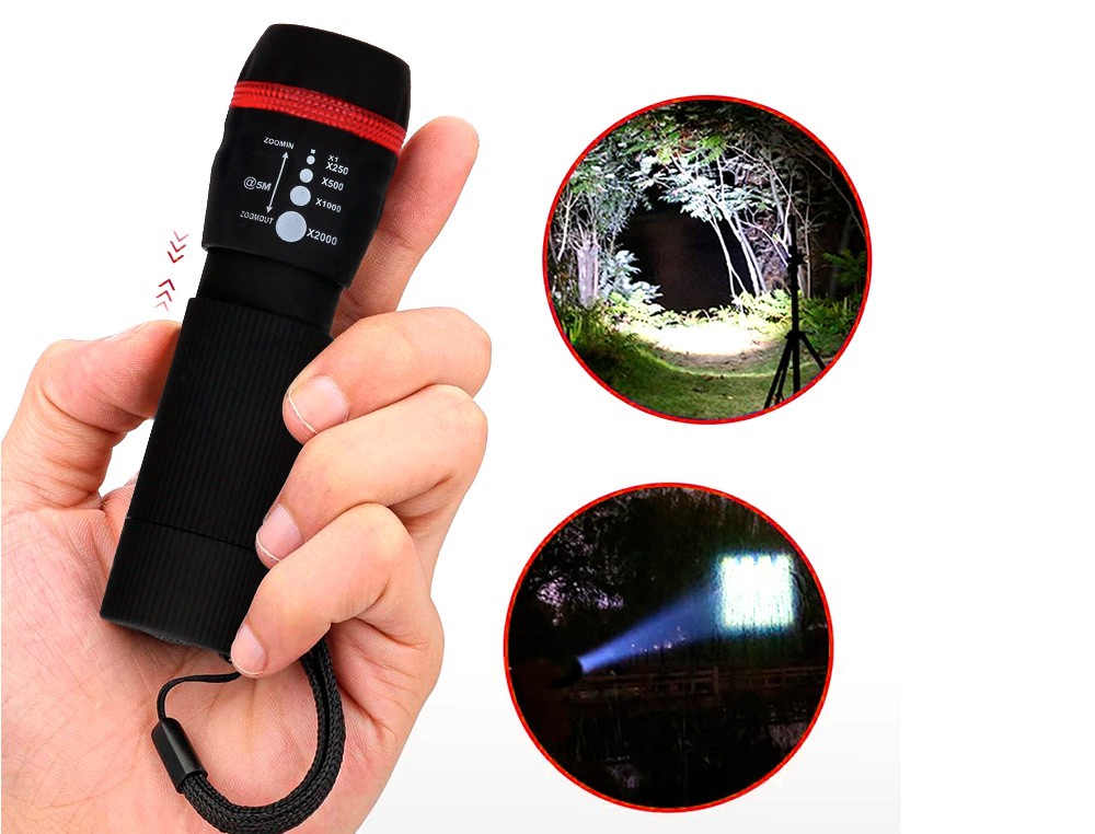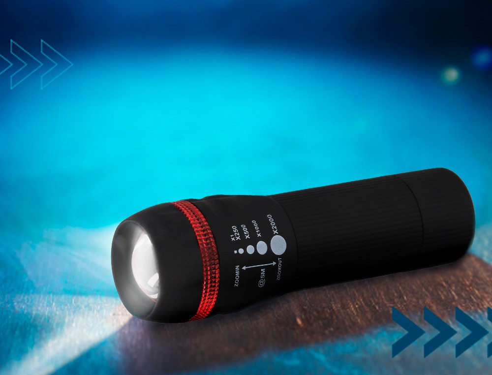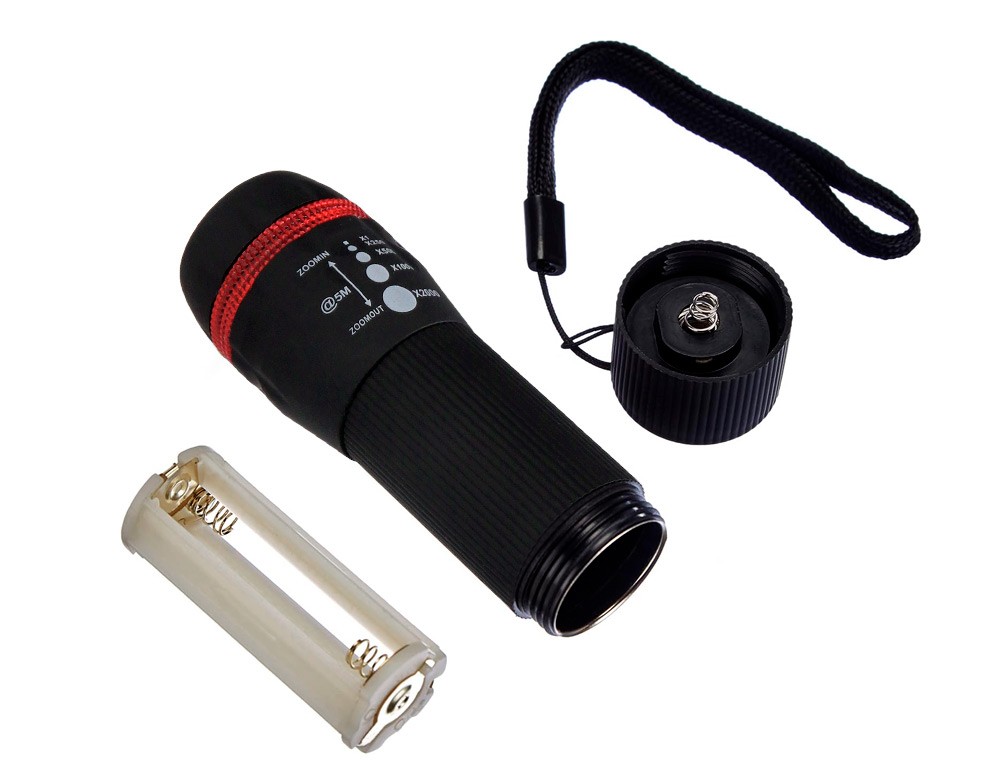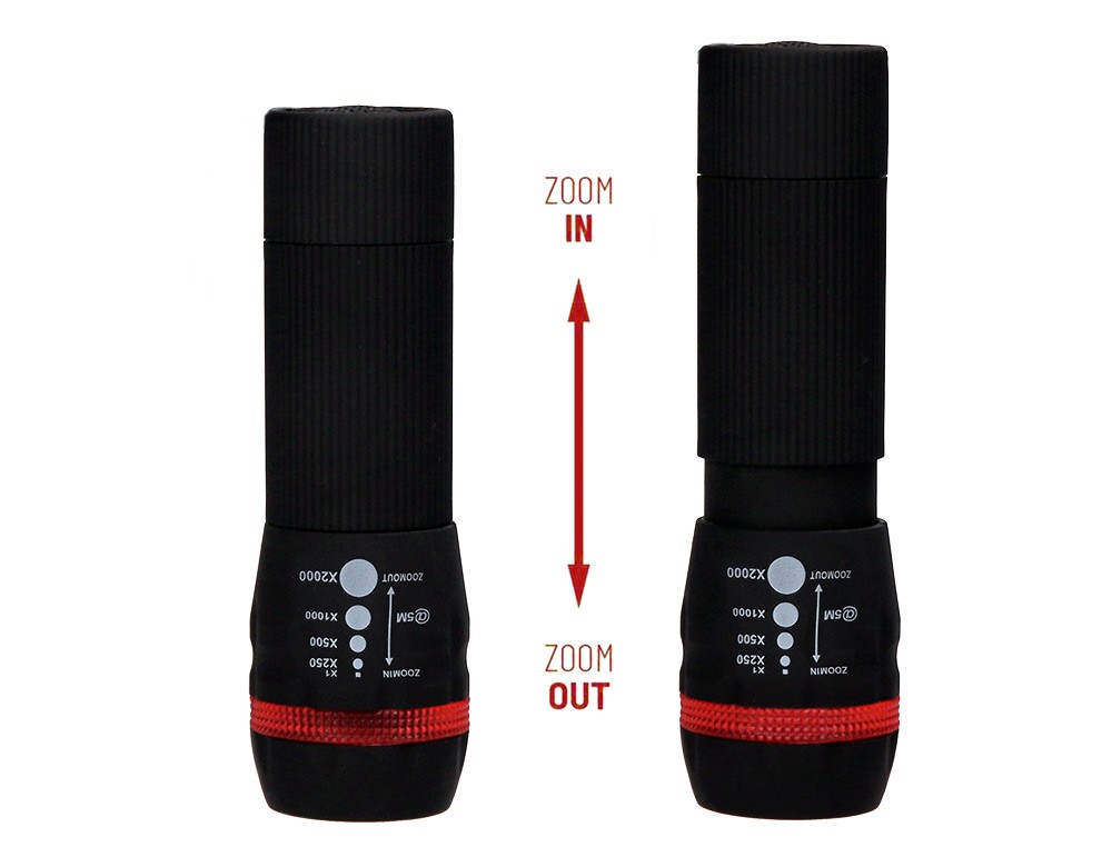 Linterna q-connect kf18749 plastico con zoom 1w modo alumbrado encendido apagado incluye 3 pilas aaa