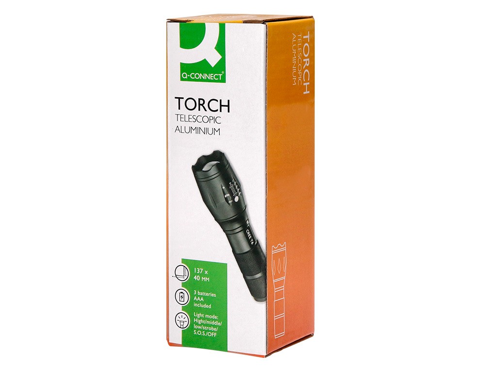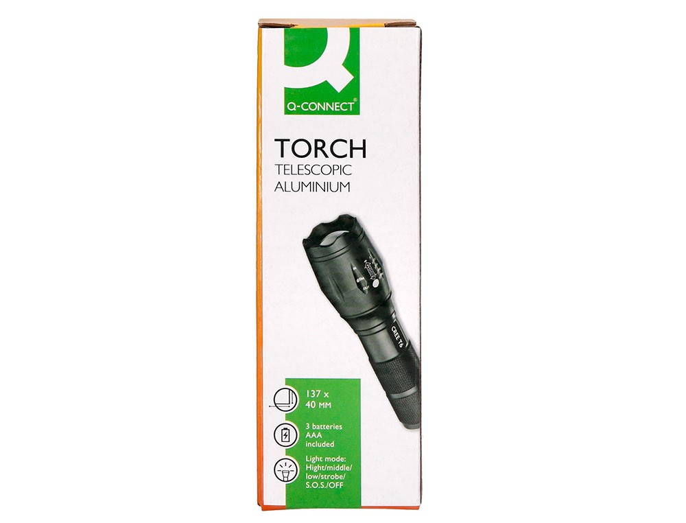 Linterna q-connect telescopica aluminio 5w modo alumbrado alto medio bajo estroboscopio sosapagado 3 pilas aaa