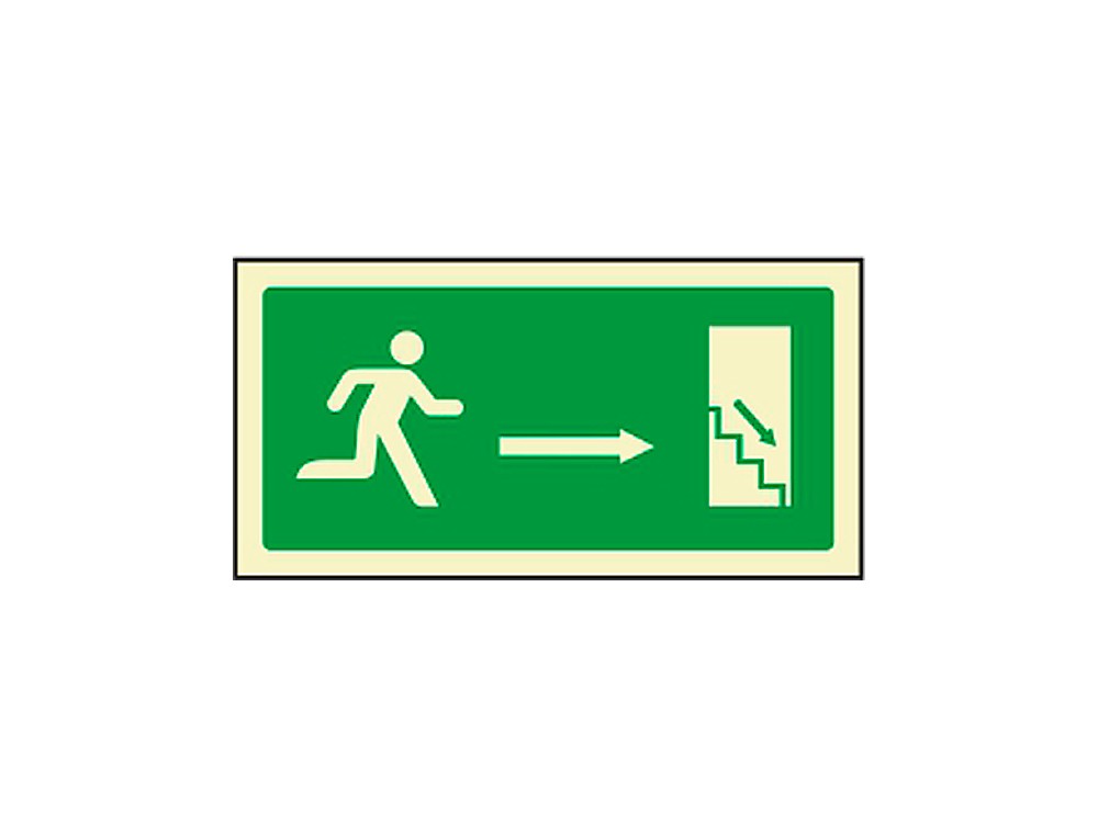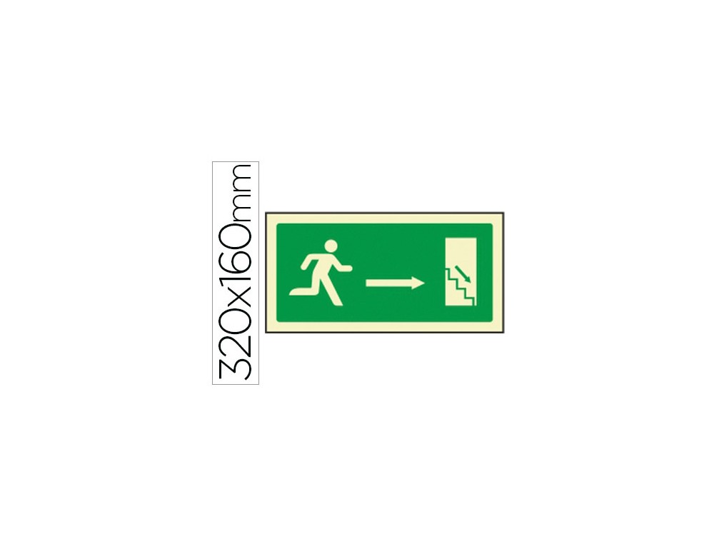 Pictograma syssa señal de salida emergencia derecha bajando en pvc fotoluminiscente 320x160 mm