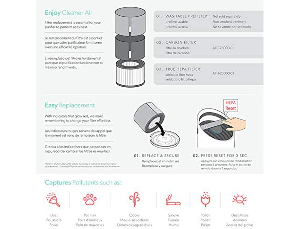 Filtro 3 en 1 de recambio HEPA más tambor DuPont para purificador de aire Leitz TruSens Z-3000